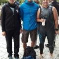 Bis kurz vor 9Uhr war der Checkin möglich. Darauf folgte gleich um neun Uhr die Wettkampfbesprechung am Schwimmbecken. Die Außentempetarur war noch recht frisch, aber durch vereinzelte Sonnenstrahlen wurde es etwas angenehmer. Um 09:30 startete schon die 1. Welle von drei Wellen der Olympischen Distanz, in dieser durften Michaela und Claudia ins Rennen starten. Ich war in der Dritten Welle mit dabei, die pünktlich um 11:05 startete.