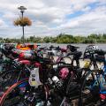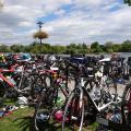 Nun also doch, ich bin angemeldet für einen Triathlon. In weiser Voraussicht allerdings nur für die Staffel. Spontan entschieden sich Micha, Sandra und ich beim Lauf10-Abschlussabend im Vereinsheim, uns gemeinsam als Staffel für die Volksdistanz anzumelden. Nach kurzer Beratschlagung waren auch die Disziplinen verteilt: Micha schwimmt, ich fahr Rad und Sandra läuft. „Die Unbelehrbaren“ waren angemeldet! So machen wir drei uns am Samstag auf nach Kitzingen, im Gepäck Christian, der aber anders als wir auf der Olympischen Distanz debütierte. Für mich als (reiner) Läufer ist der ganze Ablauf eine interessante Erfahrung. Beim Laufen ist es herzlich egal, wer was wann wo macht, Hauptsache man ist am Start, wenn‘s „Peng“ macht. Ganz anders beim Triathlon: rechtzeitiger Check-In, streng limitierter Zugang zur Wechselzone, Wettkampfbesprechung etc. Für Triathleten vollkommen normal, aber für mich völlig ungewohnt.