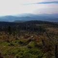 Am Arbersee, etwa bei km 40, passierte ich als 65. der Gesamtwertung nach 5:24:57 Std. die Kontrollstelle und uns erwartete die nächste Versorgungsstation. Übrigens war der Sieger zu diesem Zeitpunkt bereits seit über 20 Minuten im Ziel. Kurz etwas trinken und weiter ging es, natürlich wieder bergauf. Auf angenehmen Weg führte die Strecke zum 1340 Meter hohen Mittagsplatzl, von dem aus sich ein atemberaubender Blick auf den Großen Arbersee und Bayerisch Eisenstein bot. Schön langsam kam immer wieder der Gedanke, dass es eine Zielzeit von unter 8 Std. werden könnte. Erst führte die Strecke weiter durch den Wald, ging anschließend in einen sonnigen Fahrweg über, auf dem man es einfach laufen lassen konnte, wenn die Kraft noch mitspielte.