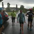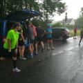 Ich fuhr aber trotzdem zum Lauftreff und war erstaunt, dass sich nach und nach immer mehr Läuferinnen und Läufer zum Training einfanden. Die kurzfristige Absage hatten sie nicht mitbekommen und so entschlossen wir ein Bergtraining abzuhalten und notfalls schnell zu unseren Autos zu laufen.