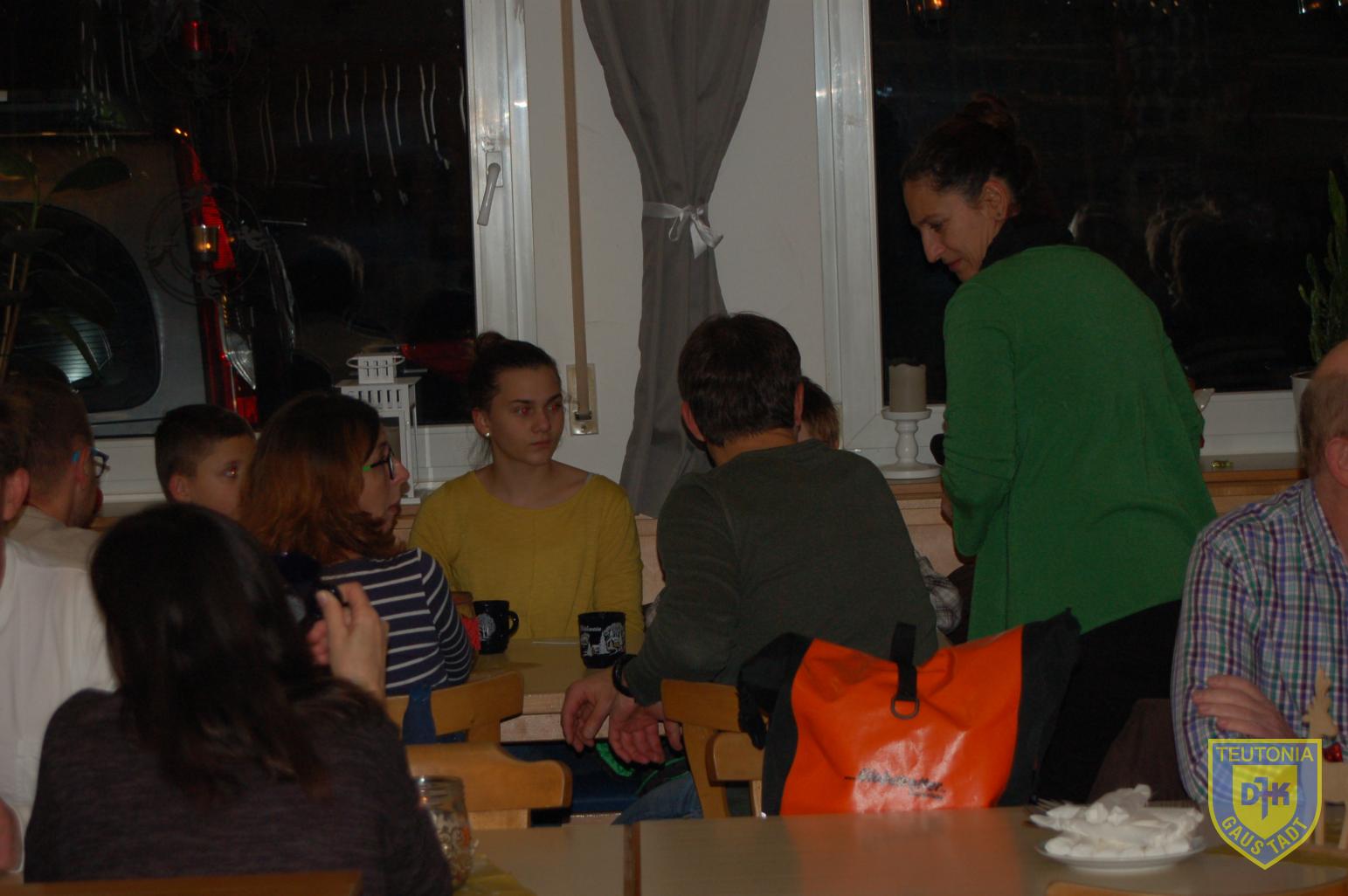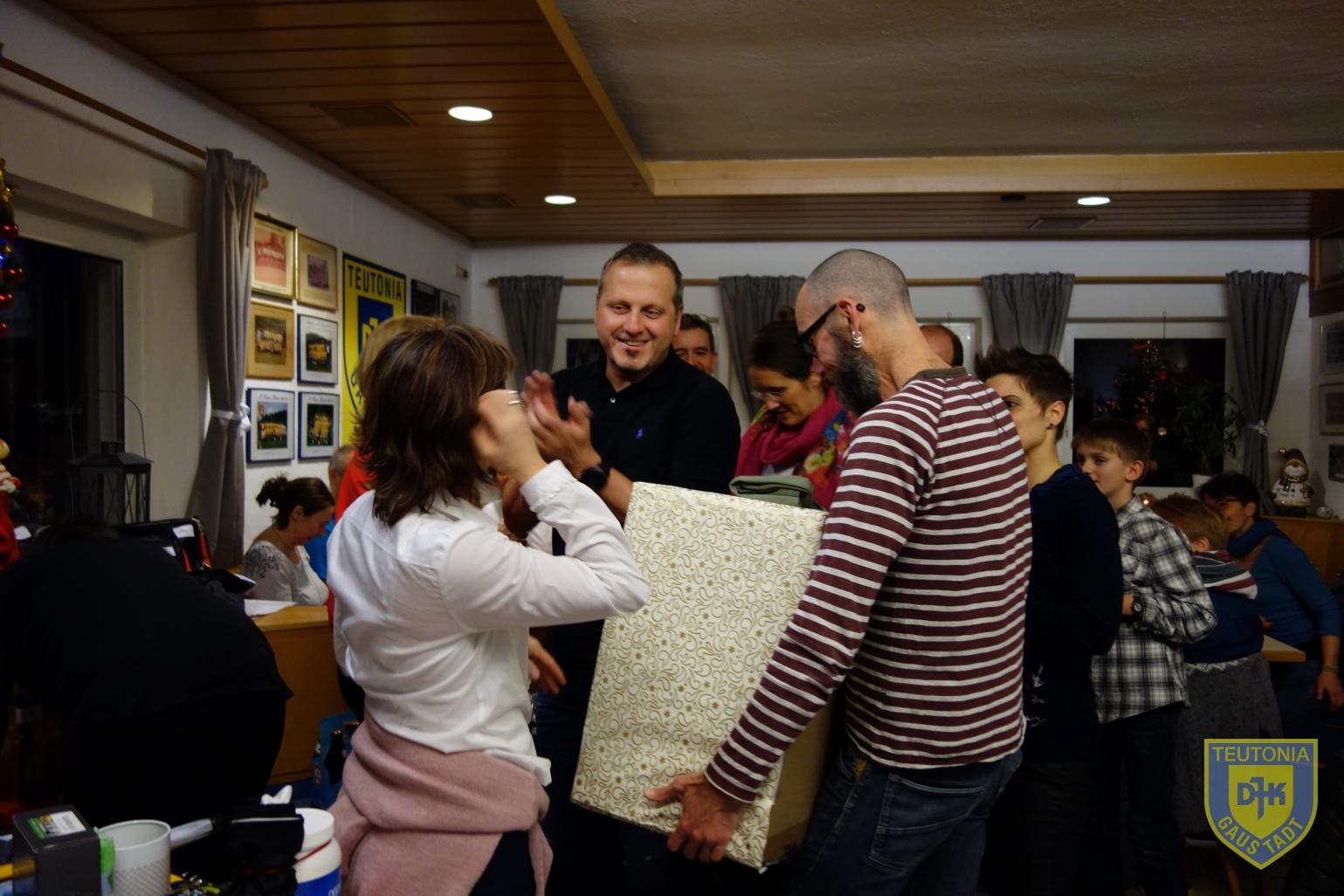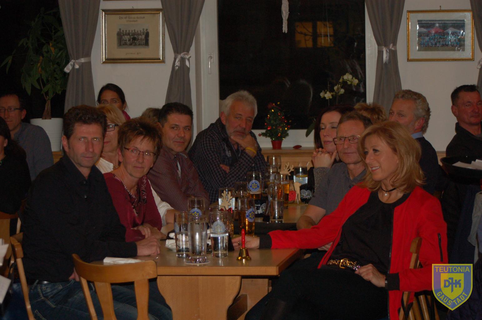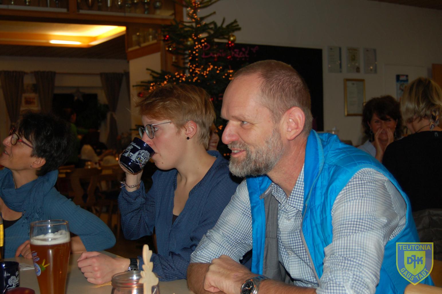 Der Platz im Vereinsheim reichte in diesem Jahr gerade noch aus, um die zahlreich erschienenen Triathletinnen und Triathleten samt ihren Familienangehörigen aufzunehmen. Die Weihnachtsfeier begann gegen 18 Uhr mit einem Glühweinumtrunk, natürlich auch ohne Alkohol.
