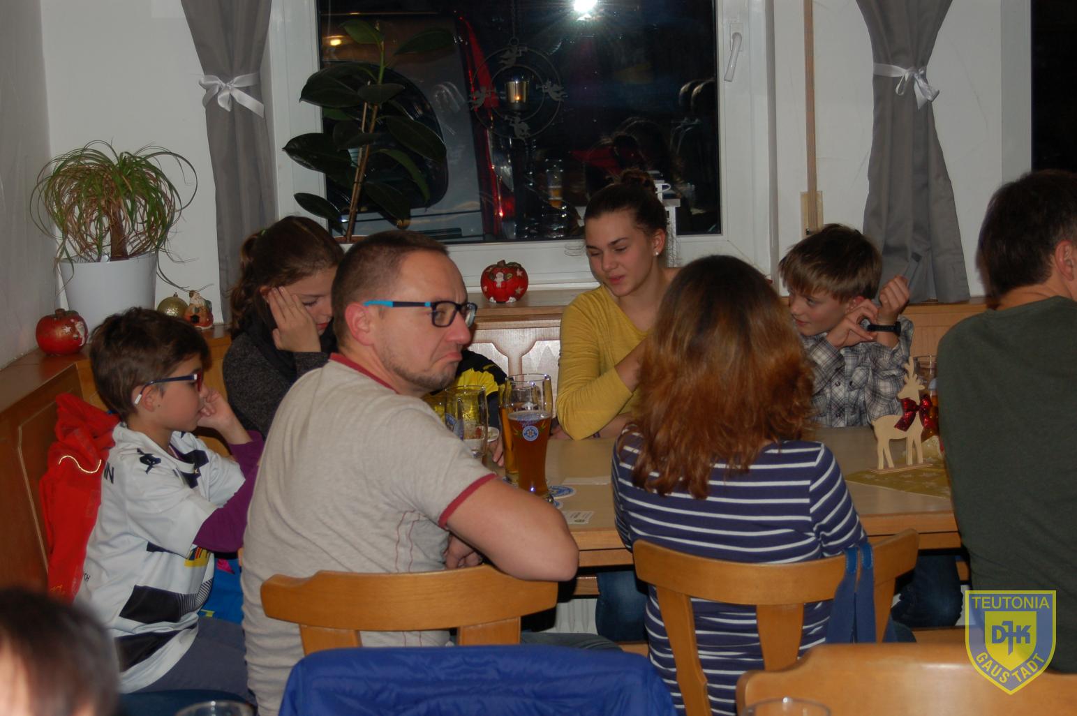 Als nächstes folgte das Weihnachtsessen. Es klappte wieder perfekt, das Team vom DJK Hüttla hatte alles im Griff. Ob Gänsebrust, Schäuferla, Kabeljau-Filet oder Pasta, das Essen schmeckte Jedem hervorragend und das Panna Cotta als Nachspeise war lecker.