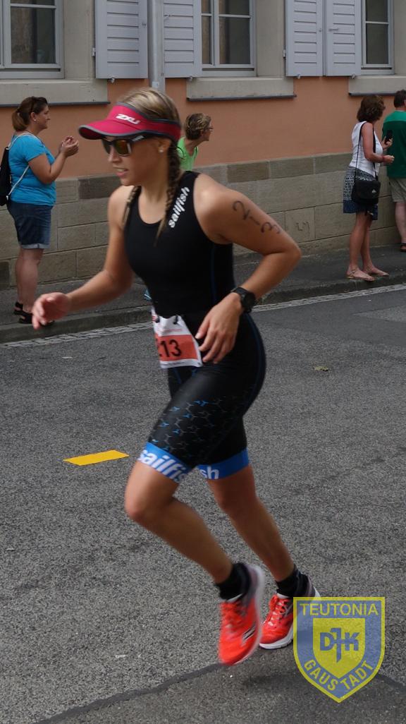 In Hofheim angekommen wurde das Rad noch vor der Wechselzone mit freundlicher Helferunterstützung in dafür vorgesehene Halterungen gehängt und dann ab in die Wechselzone, Box gesucht, rein in die Laufschuhe und los!