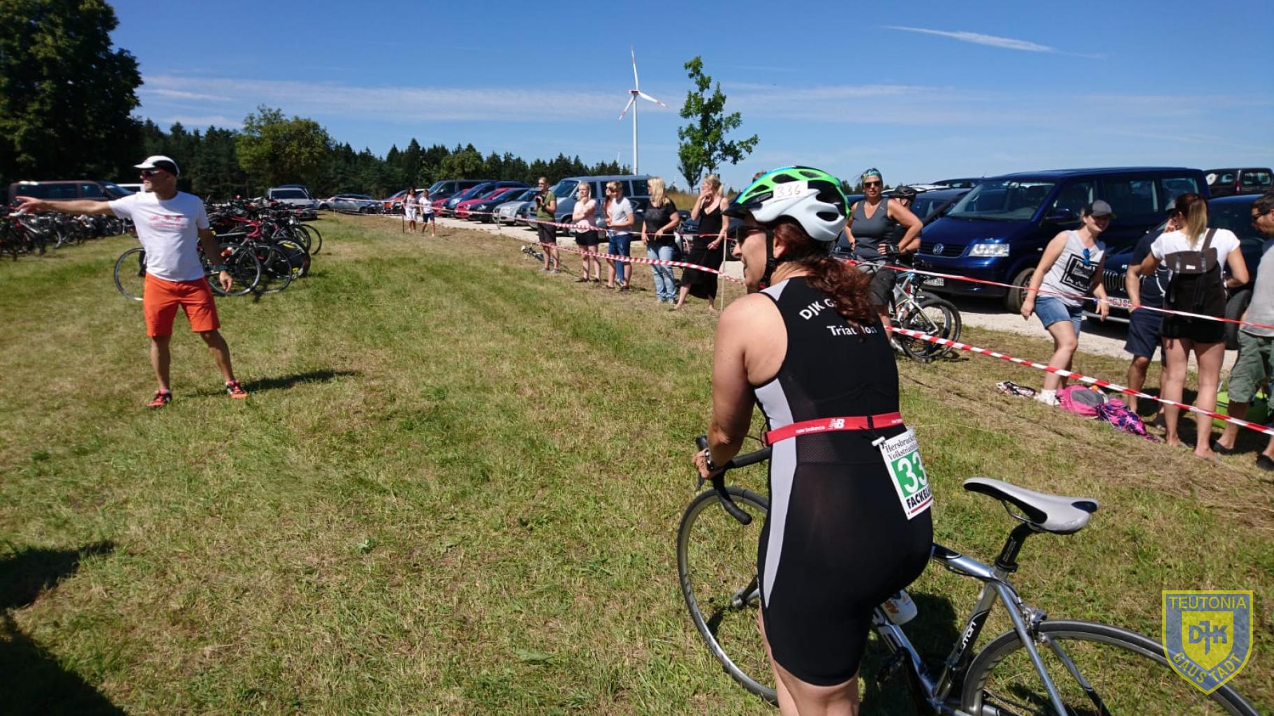 Aber angemeldet ist angemeldet. Am Wettkampftag reisten Sandra und ich mit gemischten Gefühlen an. Auch das Teilnehmerfeld sah recht professionell aus, außerdem war es noch die Vereinsmeisterschaft vom Post SV Nürnberg. Aber wir waren nun mal da und kneifen geht ja gar nicht. Also auf in den Bagersee. Das Schwimmen lief ganz gut, angenehme 22 Grad und durch den Start im hinteren Feld auch kein Wasserkampf. Nahezu zeitgleich kamen Sandra und ich aus dem Wasser, schnell umgezogen und aufs Rad. Tatsächlich, die Radstrecke verlief nur bergauf, manchmal richtige Berge und manchmal sehr subtil, man sah die Steigung nicht aber man merkte es. Aber es machte trotzdem Spaß. Kurz vor dem Ziel tatsächlich die angekündigte Steigung und was macht meine Schaltung – sie hakt und ich kann nicht mehr aufs kleine Blatt schalten – dann eben nicht. Oben angekommen funktionierte es wieder, Gott sei Dank, denn jetzt kam der letzte Berg kurz vor dem Ziel, aber auch geschafft.