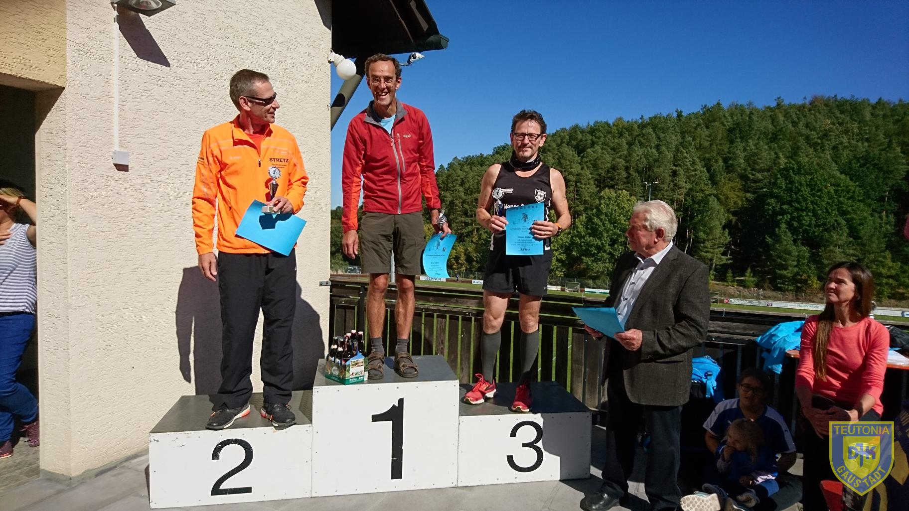 Nachdem ich den Termin recht spät auf unsrer Seite gestellt habe, waren leider nur Karin und Ich von den Teutonen am Start. Ich dachte, dass hier weniger ambitionierte Läufer an den Start gehen, aber Pustekuchen die gleichen Jungs und Mädels wie anderswo. Die Veranstaltung war bestens durchorganisiert und alle Verantwortlichen und Helfer sehr freundlich. Chapeau! Der Lauf 10 km Lauf ging um 11:15 im Station des SV los und gleich ca.2 km bergauf, da bläst es Dir gleich die Lunge richtig frei. Danach ging stetig auf und ab. Am Schluss zieht es sich nochmal den letzten Kilometer ekelhaft zum Sportplatz hoch zur Zielrunde im Station. Am Ende reichte es zum 3. Platz in der M55,49:07. Karin und ihre 3 Begleiter legten auch zügig los und lagen gut im Rennen. Doch dann waren Sie sich nicht mehr ganz sicher wo es lang geht und bogen falsch ab. Nach 12,6Km kam die Gruppe dann doch noch glücklich ins Ziel. Für Karin hatte es auch auf Podest geschafft in Ihrer Altersklasse 3.M45, 1:14:52. Was wäre da drin gewesen, wenn sie nur 10Km gelaufen wäre?