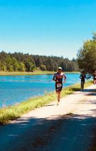 Nach soliden 1:11:15 Bin ich aus dem Wasser. Geplant war beim schwimmen eine 1:05 Std -1:08Std aber damit konnte ich "leben". Aus dem Wasser bin ich gut durch die erste Wechselzone geekommen und war fix auf dem Rad. Mein Ziel war eine Zeit von 5 Stunden für die 180km, was ich leider durch den Gegenwind und der ein oder anderen Schwächephase (Nasenbluten nach ca. 50km)nicht schaffte.