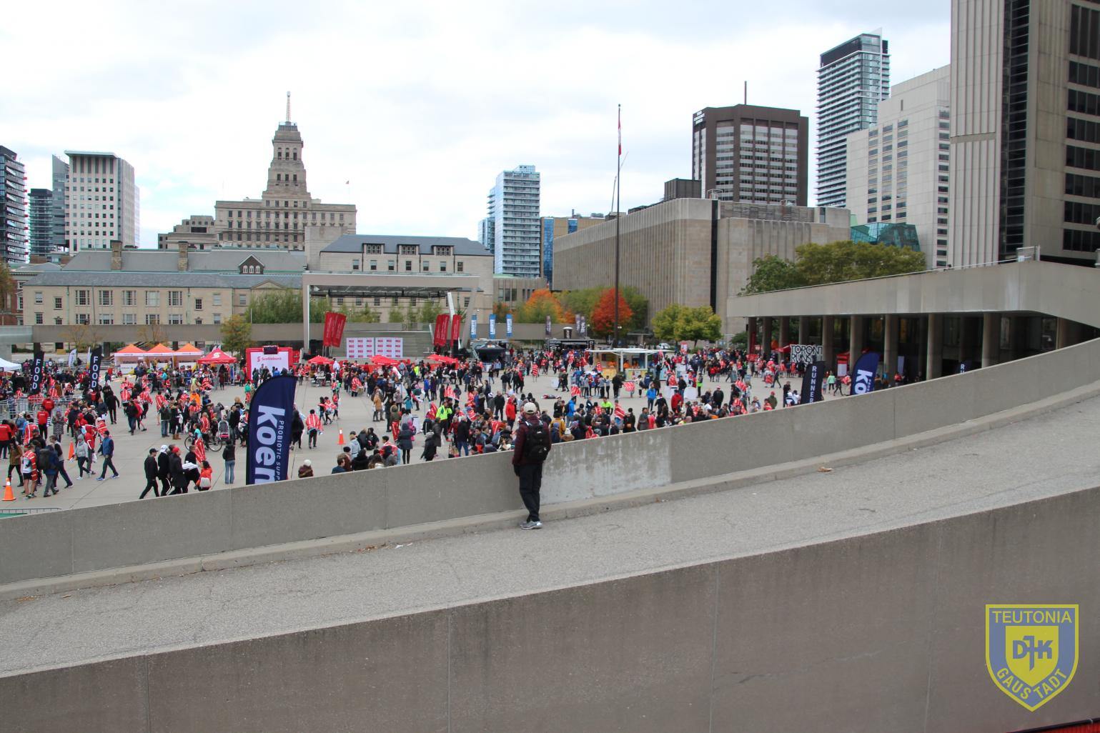 Das Abholen der Startnummern verlief am Freitag auf der Marathonmesse (die kleiner war als erwartet) problemlos, Bus Shuttles (echte kanadische Schulbusse!) brachten die Läufer ins Enercare Center.