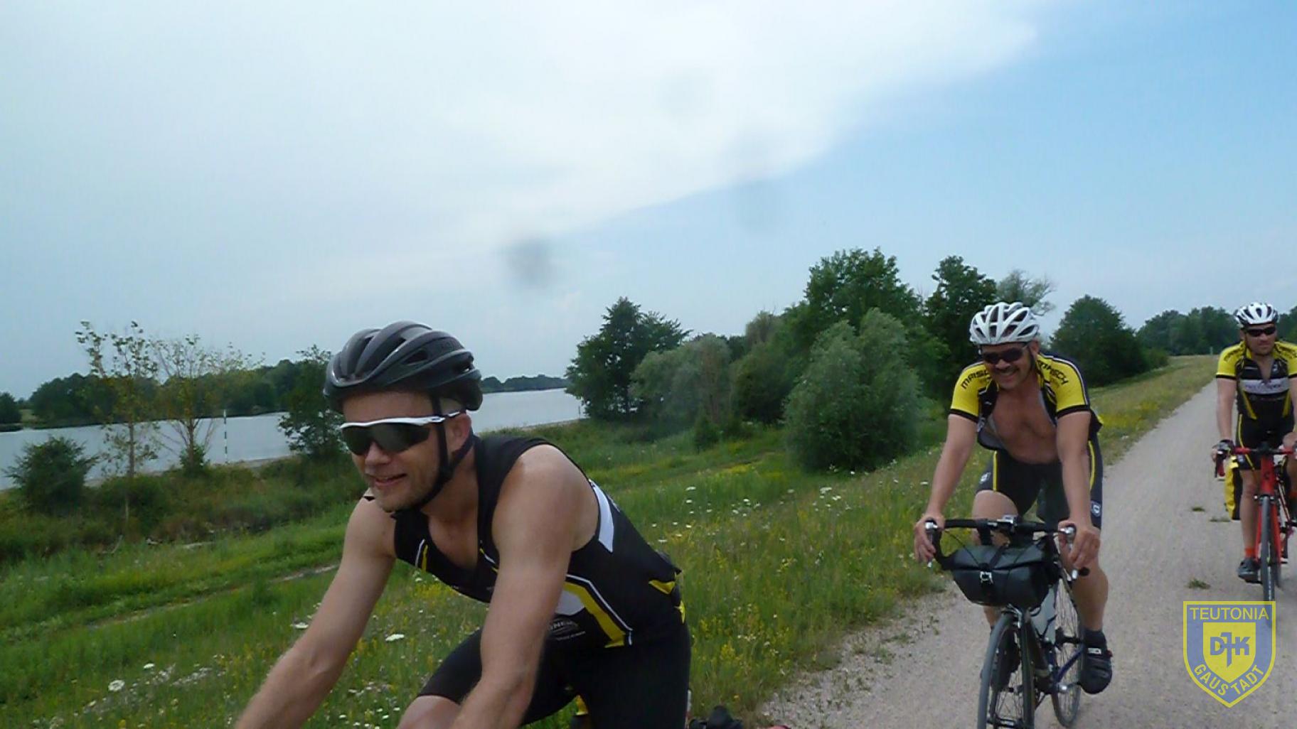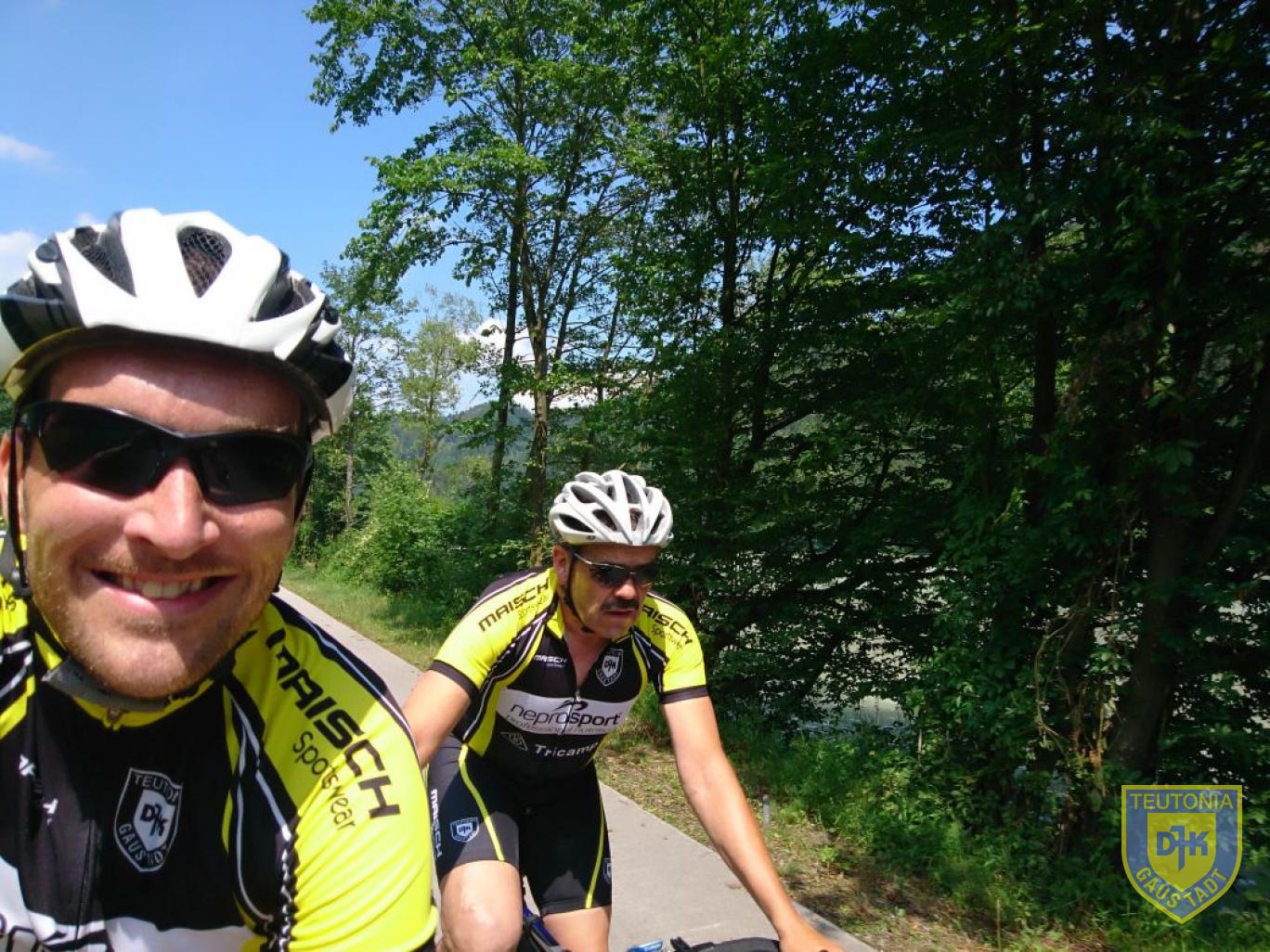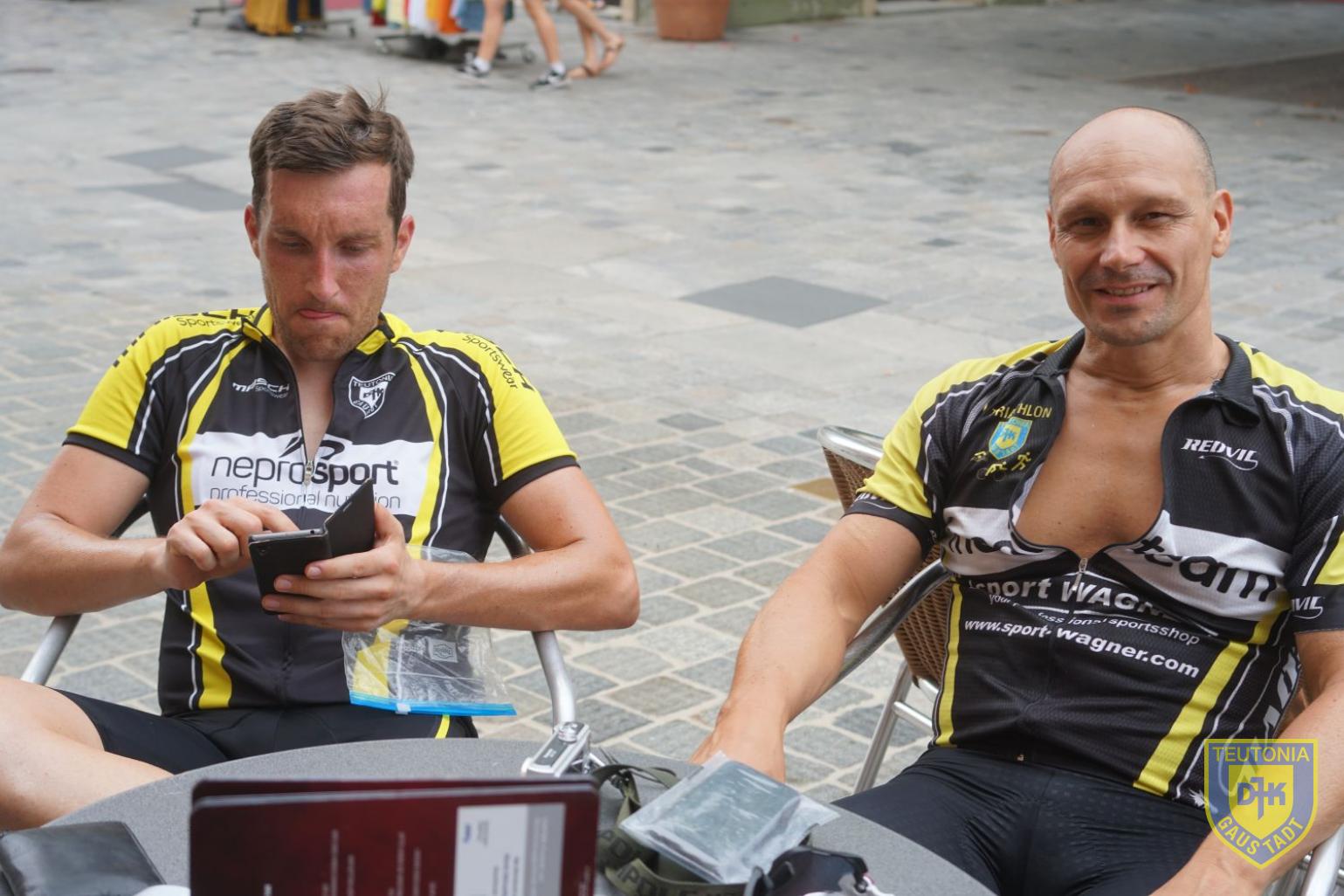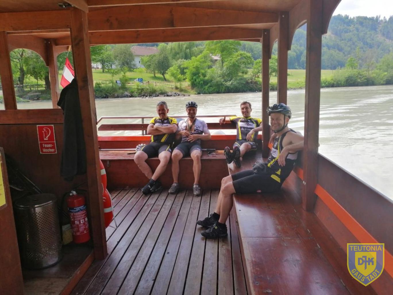 Das große Ziel naht: die letzte größere Etappe, die es mit Gepäck zu fahren galt, startete gegen halb zehn am Marillenhof in Melk. Als Vorbereitung genossen wir wieder ein hervorragendes Frühstück mit selbstgebackenen Brötchen. Die ersten Kilometer rollte der DJK-Express mit Tender wieder entlang des Donauradweges. Nach knapp einer Stunde Fahrt nährten wir uns Dürnstein. Am Nordufer gelegen thront über der Stadt die einst mächtige Burg Dürnstein, heute nur noch eine Ruine, erbaut Mitte des 12. Jahrhunderts. Ein kurzer Stopp mit obligatorischem Foto erfolgte. Jedoch anders als Richard Löwenherz wurden wir nicht zu unfreiwilligen Gästen. Herzog Leopold V. bzw. Hadmar II. hielten den Englischen König auf seiner Rückkehr vom Dritten Kreuzzug dort gefangen und lieferten diesen später an Kaiser Heinrich VI. aus. Eine Festungshaft blieb uns allerdings glücklicherweise erspart. Nach einer kurzen Hast, bei der Jens und Ole vom DJK-Tross abrissen, kehrten wir zum Mittag in die Bärndorferhütte am Fuße des Atomkraftwerkes Zwentendorf ein. Das AKW wird als die größte Investitionsruine Österreichs bezeichnet, denn es ging tatsächlich nie in Betrieb. Somit mussten wir uns auch keine Sorgen machen und konnten entspannt das Essen genießen. Die Kilometer flogen weiter an uns vorbei, bis wir nach knapp 110 Kilometer einen letzten Stopp kurz vor Wien einlegten. Wir verabschiedeten uns bereits von unserem Begleiter, der am selben Tag noch ein paar Kilometer fahren wollte. Von Norden her rollten wir dann nach Wien ein, ohne direkt zu wissen, dass wir bereits da waren. Es fehlte das Ortsschild auf dem Radweg, so dass wir bereits mitten in Wien zum Halten kamen. Die nun endgültige Verabschiedung von Ole war dann doch irgendwie merkwürdig, hatte er uns doch jetzt fast 3 Tage und 300 km begleitet. Aber Wege trennen sich und Bamberger wissen es: Man sieht sich immer zweimal. Zur Überbrückung der Schlüsselübergabe der Unterkunft genossen Christian, Michael und Ralf einen kurzen Sprung in die Donau, während Jens bei den Fahrrädern ein wenig döste. Eine Zwei-Zimmer-Wohnung im sechsten Stock mitten in der Wiener Donaustadt diente als Unterkunft, die Räder parkten auf den zwei angeschlossenen Balkonen. Getreu Reinhard Fendrichs Hit „Haben sie Wien schon bei Nacht gesehen, haben sie das schon erlebt?“ war der Plan für den Abend geschmiedet: Essen im nahegelegenen Donau Zentrum und danach mit der U-Bahn zum Stephansplatz. Ein kurzer Rundgang durch die Wiener Innenstadt, vorbei am Stephansdom, der Wiener Hofburg sowie der Österreichischen Nationalbibliothek zur Albertina endete dann mit einem Radler aus der Dose auf einer Parkbank mitten in der Wiener Innenstadt, durchaus stilvoll.