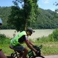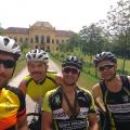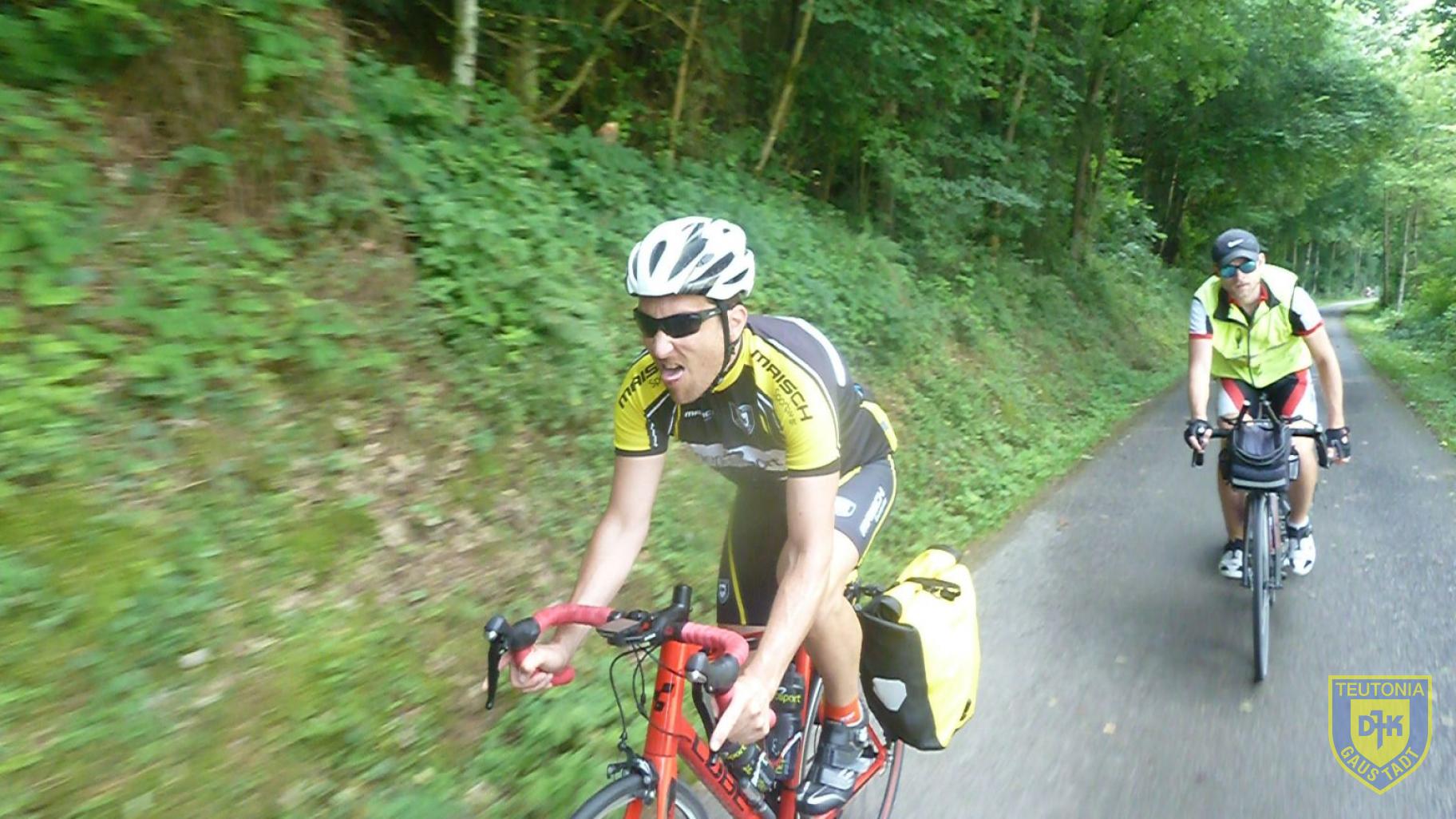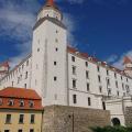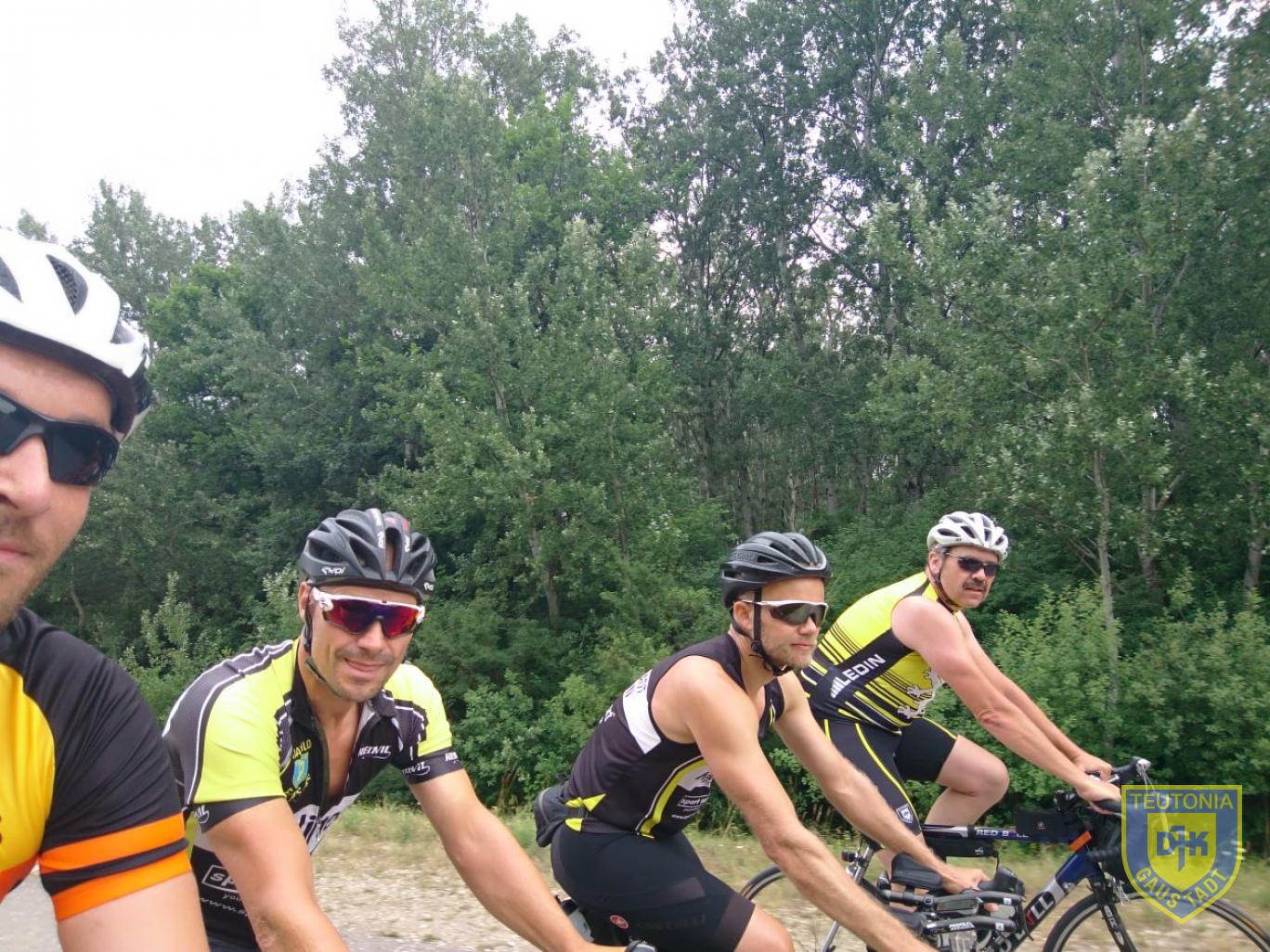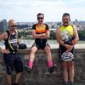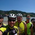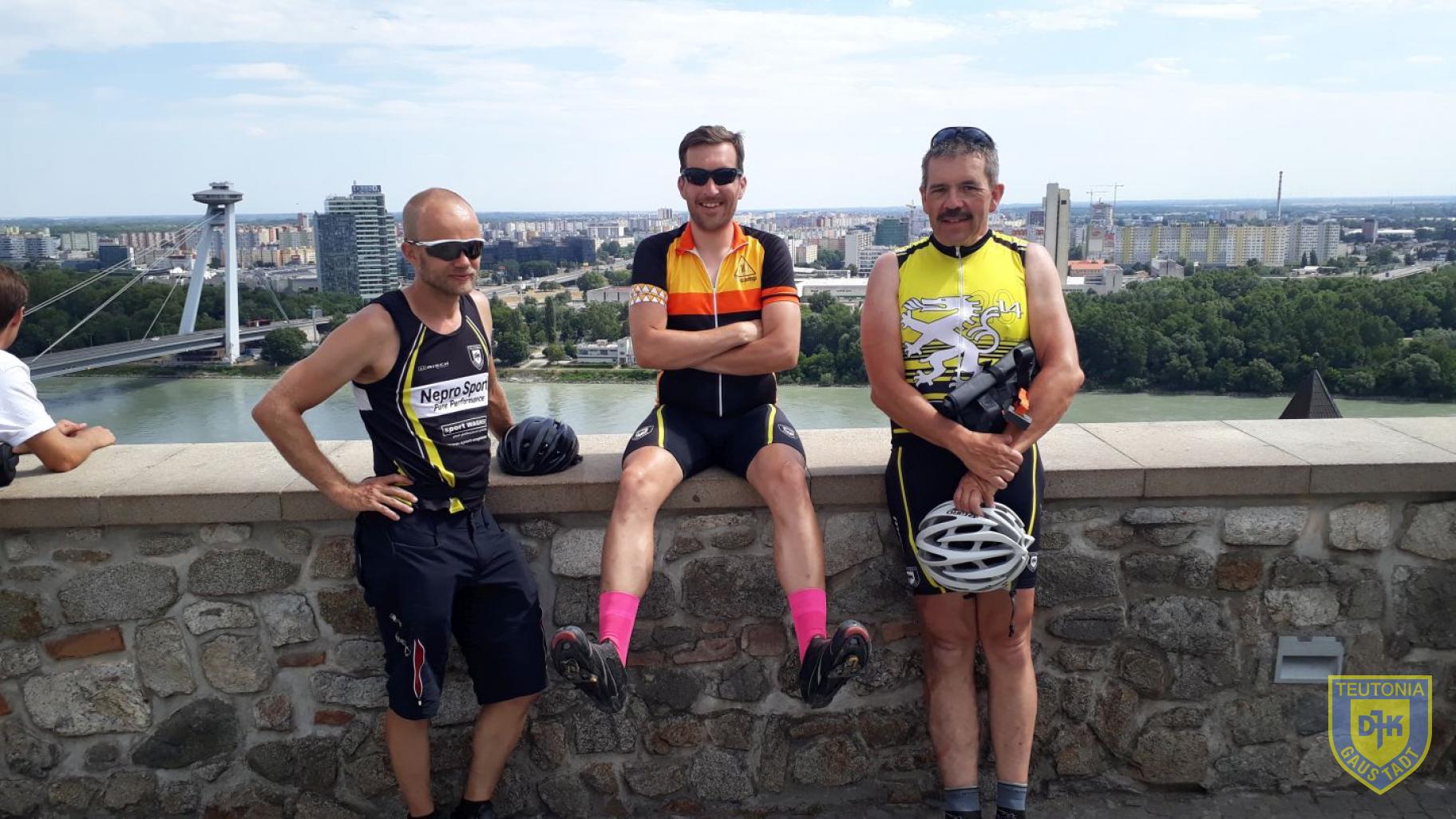 Geweckt von der Geräuschkulisse einer erwachenden Großstadt sollte es am fünften Tag zur letzten Etappe gehen. Heute einmal kein obligatorisches Verstauen der persönlichen Sieben Sachen in die Radtaschen, denn wir kehren heute Nacht zurück. Gegen 09:00 Uhr ging es los, mitten durch die Wiener Donaustadt auf der Wagramer Straße. Ein kurzes Frühstück ausnahmsweise unterwegs beim örtlichen Bäcker. Die letzte Etappe sollte deutlich kürzer werden als die bisherigen und wir ließen es locker angehen. Immer entlang der Donau Richtung Süd-Osten verpassten wir die Abzweigung, die uns eigentlich um das Zentrallager Lobau im Süden Wiens führen sollte. Ein ortskundiger Rennradler half uns aber und so waren wir schnell wieder auf Kurs. Zu viert nebeneinander rollten wir Richtung Slowakei. In Hainburg an der Donau führte der Weg direkt entlang der alten Stadtmauer, die mit 2,5 Kilometern Länge, seinen drei erhaltenen Toren und 15 Türmen eine der ältesten und am besten erhaltenen Stadtbefestigungen Europas darstellt. Eine kurze Pause in Hainburg trennte uns noch von der Einfahrt nach Bratislava. Und dann war es soweit: Über die Brücke des Slowakischen Nationalaufstandes überquerten wir die Donau und fuhren direkt auf die hoch über der Stadt liegenden Burg zu. Nach einem ausgiebigen Mittagessen in der Innenstadt besuchten wir zunächst St. Elisabeth (Blaue Kirche), erklommen den Burgberg mit den Rädern und betraten die Altstadt von Bratislava durch das Michaelertor, dem einzig erhalten gebliebenem Tor der mittelalterlichen Stadtbefestigung von Bratislava. Zurück ging es am Abend mit dem Twin City Liner, ein Katamaran, der die Strecke Bratislava – Wien in nur 70 Minuten zurücklegt. Auf dem Weg zum Anleger dann noch eine kleine Überraschung: Ole saß mit seinem Bruder und seinem Vater gerade beim Essen, so dass wir uns noch kurz unterhielten. An Bord der Fähre dann: Zeit für soziologische Studien. Was es so für Menschen gibt, ist doch immer wieder faszinierend. Die Ankunft in Wien planmäßig, auf dem Radschnellweg durch die Wiener Innenstadt zurück in unser Domizil. Den Abend ließen wir im Donau Zentrum ausklingen, weiter schafften wir es heute nicht.