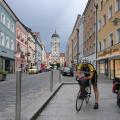 Wir starteten die Tour um 12:49 Uhr am Regensburger Hauptbahnhof. Der Weg dorthin musste aus Zeitgründen jedoch mit der Bahn überbrückt werden, so dass der eigentliche Tourstart am Bamberger Bahnhof um 09:15 Uhr zu datieren ist. Es war einer der heißesten Tage, die Temperatur kletterte schon gegen Mittag auf über 30 Grad. Der Donauradweg war dank der Beschilderung schnell gefunden. Nach dem Regensburg passiert war, eröffnete sich ein beeindruckendes Panorama: rechts floss die Donau gemütlich in Richtung Schwarzes Meer, links waren die Ausläufer des Bayerischen Waldes zu sehen. Es wurde immer heißer, Michaels Thermometer zeigte 37 Grad an. Nicht sonderlich gut für den Kreislauf. Dann das erste Ärgernis: Aufgrund von Bauarbeiten am Damm galt es, eine Umleitung zu fahren, überwiegend Schotterpisten. Ein Umstand, der bis nach Österreich immer wiederkehren sollte. Nach ca. 55 km eine kurze Pause in Straubing. Die leeren Speicher wieder auffüllen. Schon jetzt kündigte sich von Norden her ein Unwetter an. Auf dem Weg nach Deggendorf kam die Gewitterfront immer näher, verfing sich aber teilweise im Bayerischen Wald, so dass der Ausweichplan, schon in Deggendorf Station zu machen, nicht umgesetzt werden musste. Nach einer kurzen Pause ging es weiter Richtung Etappenziel Vilshofen. Die ersten Tropfen fielen mit Ankunft am Hotel. Dass wir richtig Glück hatten, sollten wir erst am nächsten Tag in den Nachrichten in Linz bemerken. Nach der wohlverdienten Dusche ging es in das angeschlossene Restaurant und der Abend klang mit einem gemütlichen Kurzbesuch an der Donau aus.
