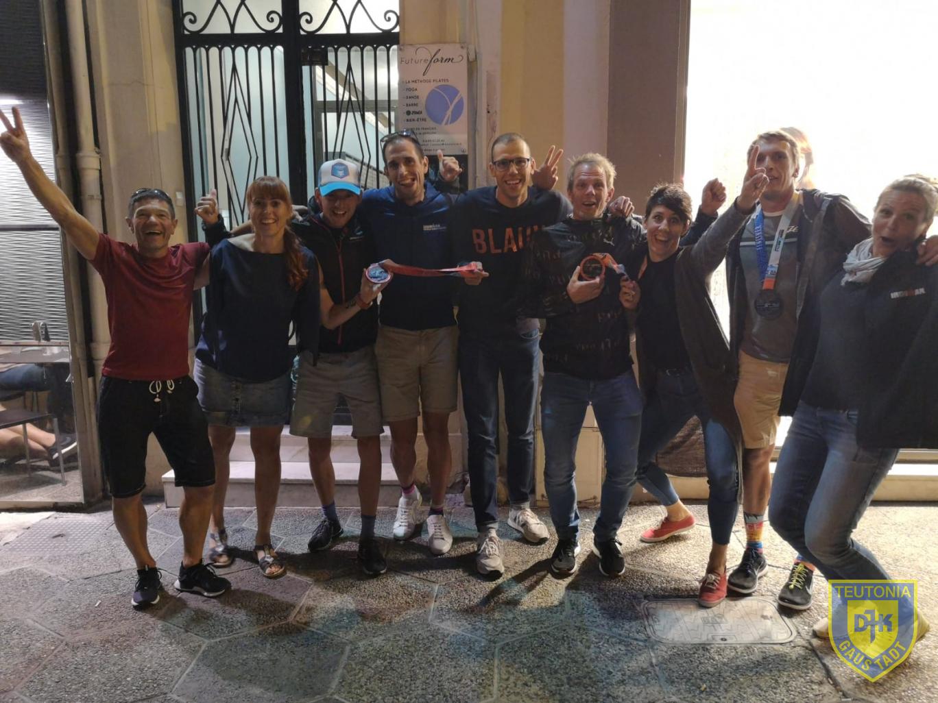 Weiter ging es auf dem Rad. Dies ist meine Paradedisziplin, zumindest im flachen/ windigen Gelände. Das Streckenprofil über den Col de Vence ist selektiv, da es durch die Anzahl der gut 1500 Höhenmeter auf Dauer sehr krafteraubend ist. Die eigentliche Herausforderung bestand jedoch im Abfahren. Durch die engen Kurven, die vielen Straßenunebenheiten und Schlaglöcher entstanden viele Defekte und Unfälle. Glücklicherweise konnte ich auch diesen Part ohne Zwischenfälle absolvieren. Zwischenzeitlich blieb sogar Raum, um die atemberaubende Sicht über die Berge auf das Meer zu genießen. Das Starterfeld am Samstag hatte gut 1000 Athleten weniger, als bei den Herren am Sonntag. Die Radstrecke war dadurch deutlich leerer und wahrscheinlich auch einfacher zu fahren. Die Männer aus der gemeinsam angereisten Männertruppe sollten am nächsten Tag weniger Glück haben.