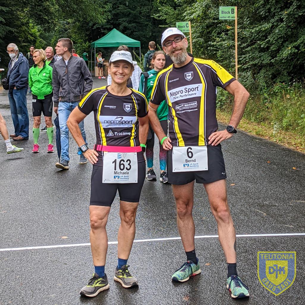 Die Running Abteilung des SC Kemmern rief zur Bayerischen Meisterschaft im 10km Straßenlauf und es kamen viele. Über 200 Läuferinnen und Läufer weit über die Grenzen Bambergs und Umgebung starteten auf dem 2km Rundkurs in der „Muna“ bei Breitengüßbach. Auch Bernd und ich genossen es endlich mal wieder an einem Wettkampf teilzunehmen und mit den „üblichen Verdächtigen“ ein Schwätzchen zu halten. Ich für meinen Teil hatte lange überlegt, ob ich hier überhaupt teilnehmen soll, denn eine Meisterschaft ist dann doch ein anderes Teilnehmerfeld als bei den Läufen bei uns in der Region. Aber ich wollte endlich mal wieder Wettkampfluft schnuppern. In den letzten 1 ½ Jahren hatte ich ja ausreichend Zeit gehabt zu trainieren 😊. Obwohl es sich um ein hochkarätiges Teilnehmerfeld handelte haben Bernd und ich uns ganz gut geschlagen und waren mit unseren Leistungen auf die 10 km sehr zufrieden. Bernd lief mit 46:20 Minuten auf den 9. Platz in seiner AK (M45). Dies war die beste Zeit seit Jahren auf der Distanz und auch ich war äußerst zufrieden mit meinem Ergebnis. Mit 50:54 Minuten lief ich persönliche Bestzeit und erreichte immerhin Platz 5 in der W55. Es war eine gelungene Veranstaltung und zufrieden fuhren wir zurück nach Gaustadt.