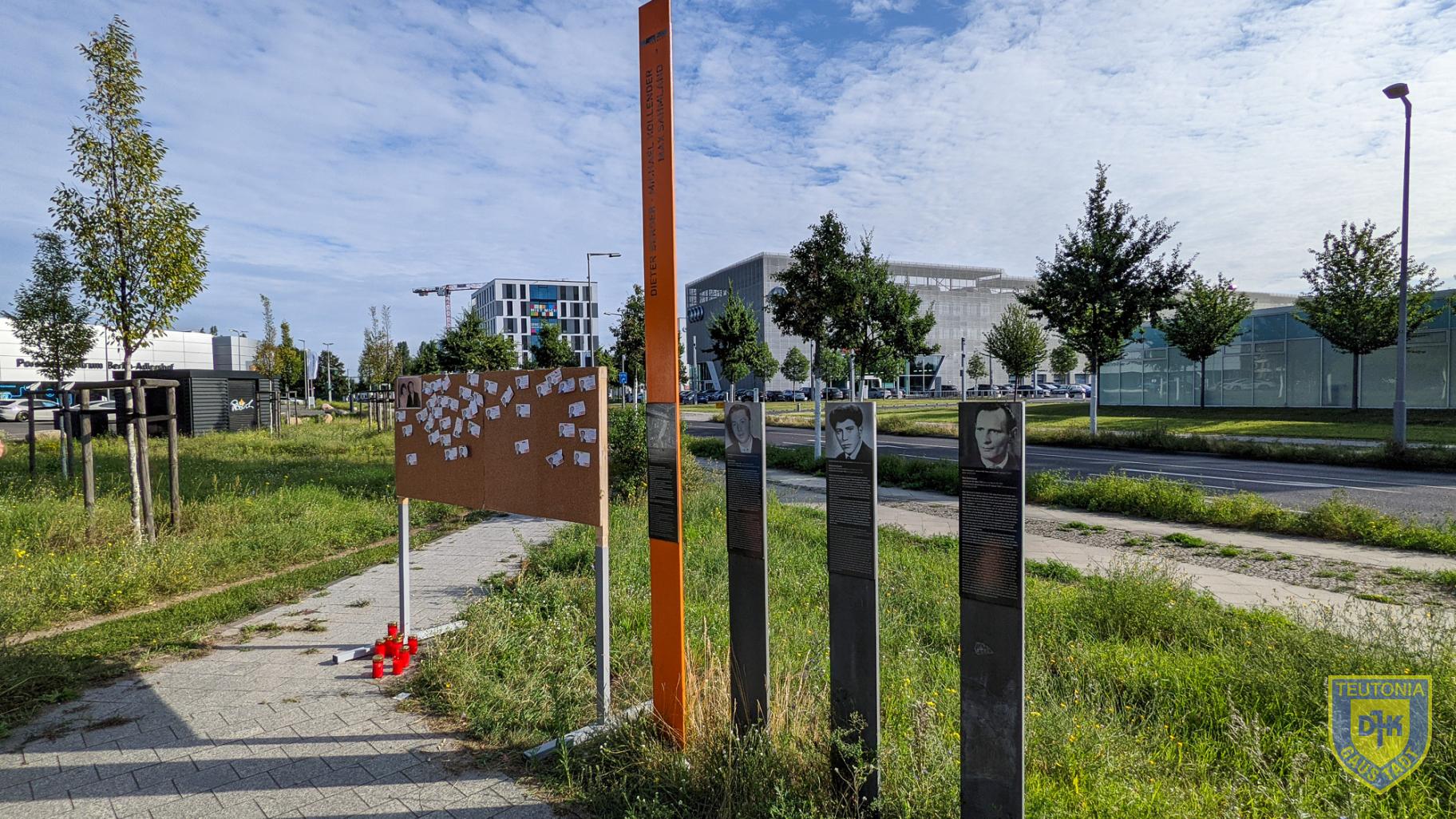 Auf den nächsten Kilometern stellt sich immer wieder die Frage, wie hat das alles vor etwas mehr als 30 Jahren ausgesehen, als die Mauer noch stand? Ein Band aus Pflastersteinen zeigt zwar den Mauerverlauf, aber so richtig vorstellen ist schwer. Bei km 13 erreichen wir die East Side Gallery, einen sehr beeindruckenden Abschnitt entlang der ehemaligen Mauer. An der Grenze zwischen Neukölln und Treptow laufen wir in den Süd-Osten Berlins bis wir bei km 29 das Denkmal zu Ehren Dieter Bergers erreichen, der 1963 an der Mauer erschossen wurde und dem der diesjährige Mauerweglauf gewidmet ist.