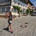 Angekommen am Markplatz hängte jeder Teilnehmer sein Rad mit dem Sattel an die dafür vorgesehene Eisenstange und lief weiter zu seiner Wechselbox mit den zuvor bereit gelegten Laufsachen. Auf der 5km langen Laufstrecke gab es 2 Verpflegungsstellen, so dass man den Körper mit nassen Schwämmen oder Getränken kühlen konnte. Auch hier hatten die Athleten der anderen beiden Distanzen eine längere Strecke mit 2 bzw. 4 Runden auf der Mitteldistanz zu absolvieren. Angekommen im Ziel wartete bereits Gerhard mit einem gekühlten isotonischen Getränk auf mich, daran könnte ich mich direkt gewöhnen. Das war nicht die einzige Überraschung. Es kam noch eine Helferin zu mir, da meine Startnummer wohl bei der Ausgabe vertauscht wurde. Diese wurde zwar geändert, meine Einzelzeiten dabei jedoch komplett aus dem System geschmissen. Kein Problem, nach dem Austausch von 3 unterschiedlichen USB Sticks waren sie wieder da und wir konnten die Siegerehrung starten. Glückwunsch an dieser Stelle zu den erfolgreichen Leistungen der Teutonen.