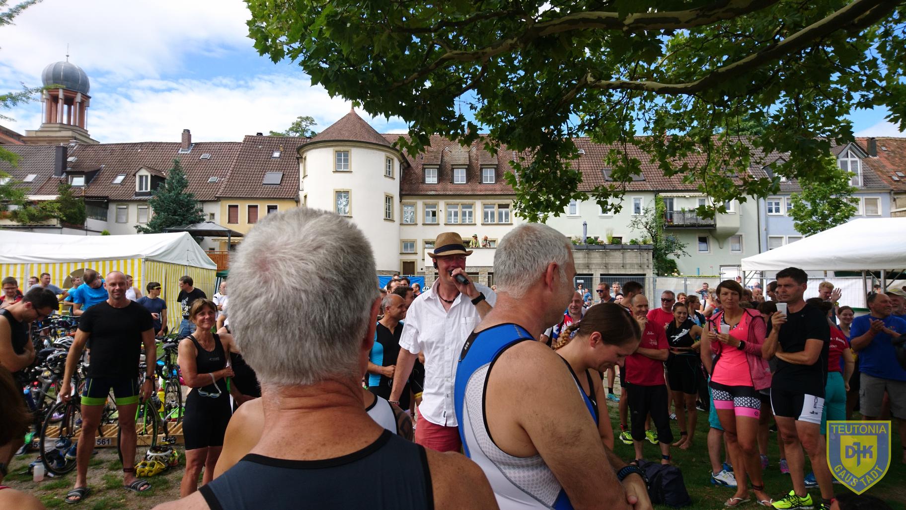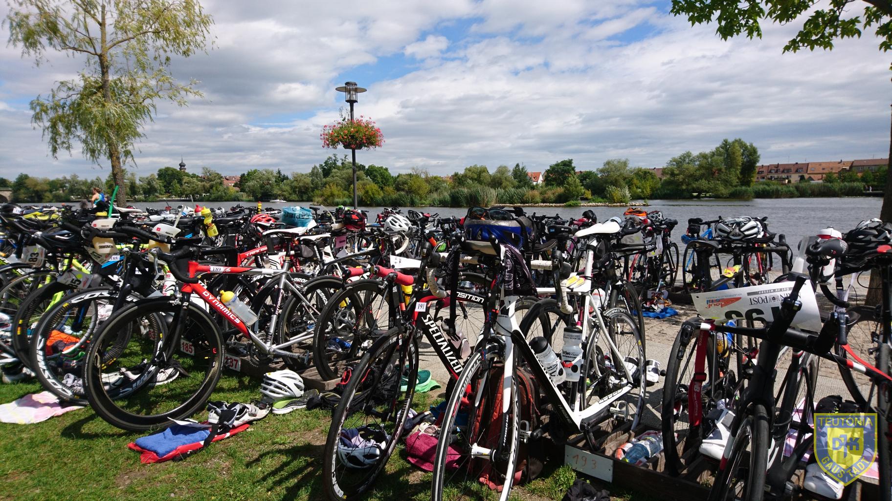 Nun also doch, ich bin angemeldet für einen Triathlon. In weiser Voraussicht allerdings nur für die Staffel. Spontan entschieden sich Micha, Sandra und ich beim Lauf10-Abschlussabend im Vereinsheim, uns gemeinsam als Staffel für die Volksdistanz anzumelden. Nach kurzer Beratschlagung waren auch die Disziplinen verteilt: Micha schwimmt, ich fahr Rad und Sandra läuft. „Die Unbelehrbaren“ waren angemeldet! So machen wir drei uns am Samstag auf nach Kitzingen, im Gepäck Christian, der aber anders als wir auf der Olympischen Distanz debütierte. Für mich als (reiner) Läufer ist der ganze Ablauf eine interessante Erfahrung. Beim Laufen ist es herzlich egal, wer was wann wo macht, Hauptsache man ist am Start, wenn‘s „Peng“ macht. Ganz anders beim Triathlon: rechtzeitiger Check-In, streng limitierter Zugang zur Wechselzone, Wettkampfbesprechung etc. Für Triathleten vollkommen normal, aber für mich völlig ungewohnt.