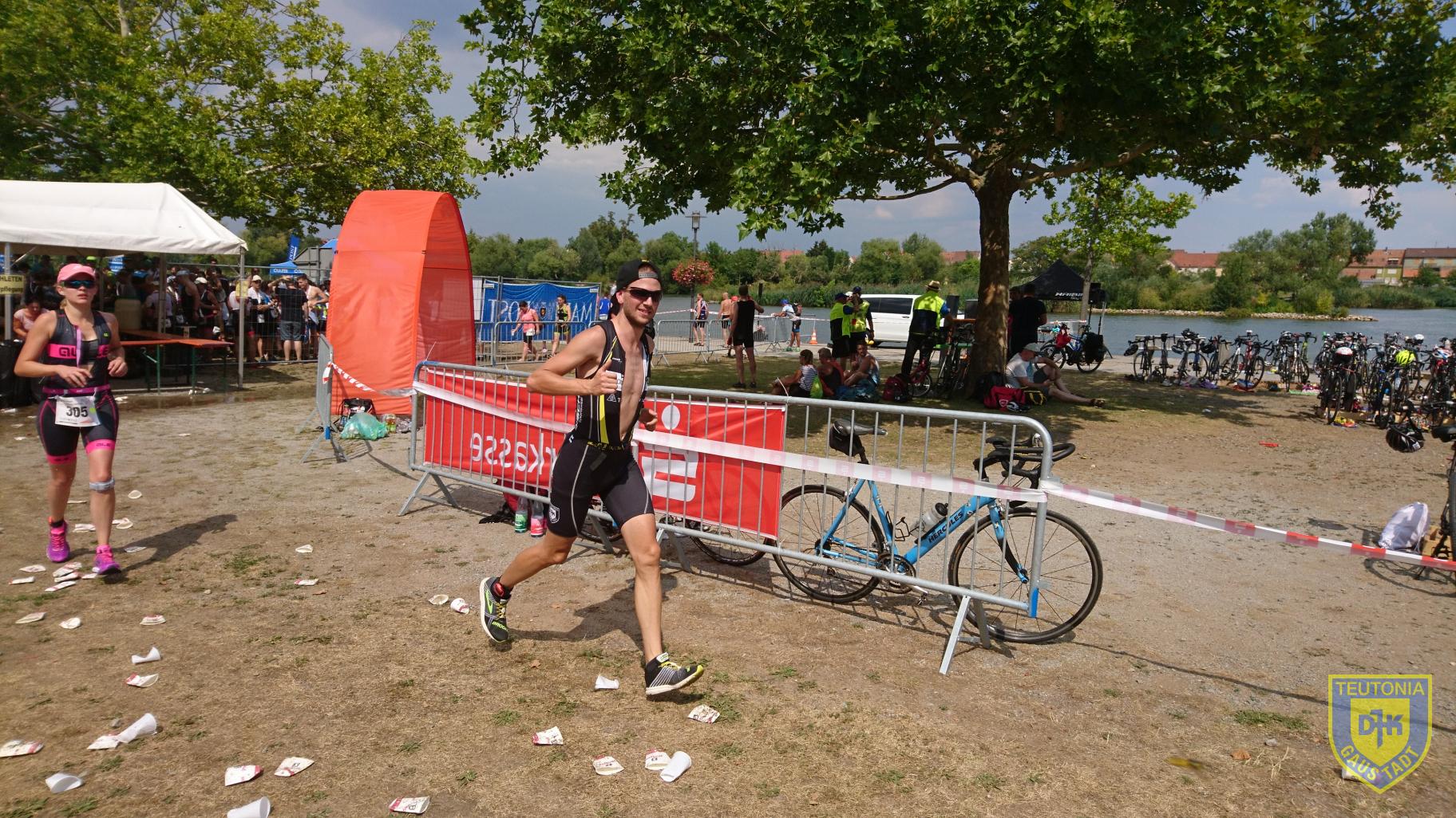 Check-In und Wettkampfbesprechung fanden direkt in der Mittagssonne am Mainufer in Kitzingen statt. Jeder noch so kleine Schattenplatz wurde genutzt, um der Hitze zu entkommen. Schon jetzt war der Andrang auf die Getränkestation in der Wechselzone hoch. Dann wurde es langsam ernst. Die Schwimmer wurden mit Bussen flussaufwärts gebracht, die Wechselzone leerte sich, nur ein paar vereinzelte Staffelradler und -Läufer verblieben in der sengenden Sonne. Abkühlung nicht in Sicht.