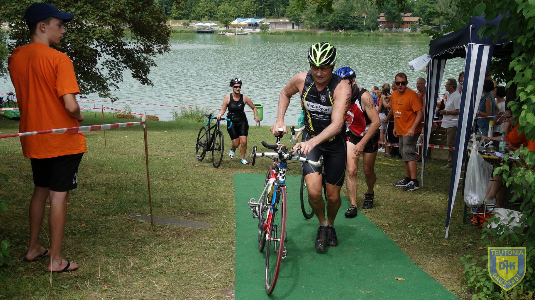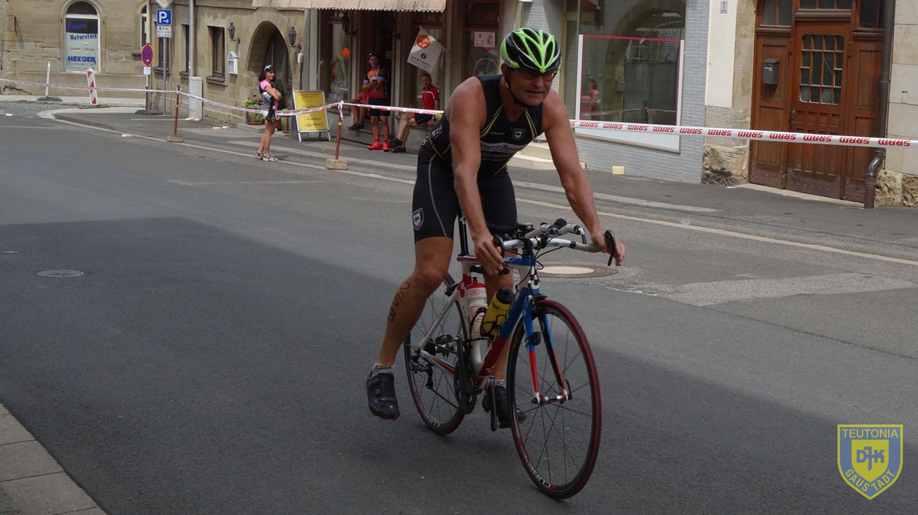 Gerhard, Micha und mich erwartete eine Runde durch den See. Nachdem ich dieses Mal ohne größere Dramen aus dem Wasser gekommen bin, ging es mit einem guten Gefühl auf die Radstrecke, die vom See 17,2 km nach Hofheim führte. Für die Kurzdistanzler ging es in Hofheim auf eine weitere Runde, Aika auf der Mitteldistanz musste drei weitere ganze Runden bewältigen.