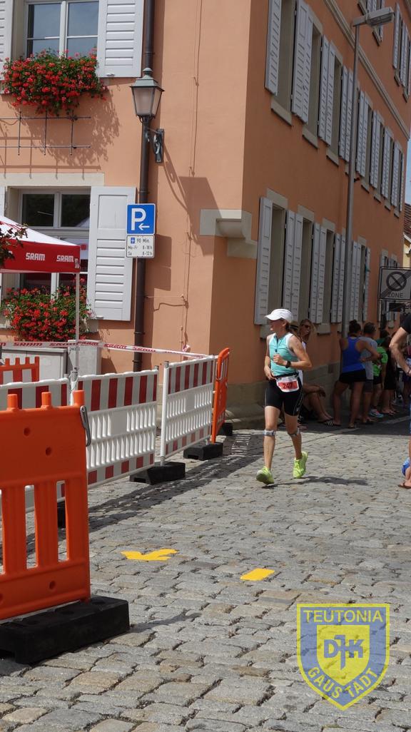In Hofheim angekommen wurde das Rad noch vor der Wechselzone mit freundlicher Helferunterstützung in dafür vorgesehene Halterungen gehängt und dann ab in die Wechselzone, Box gesucht, rein in die Laufschuhe und los!
