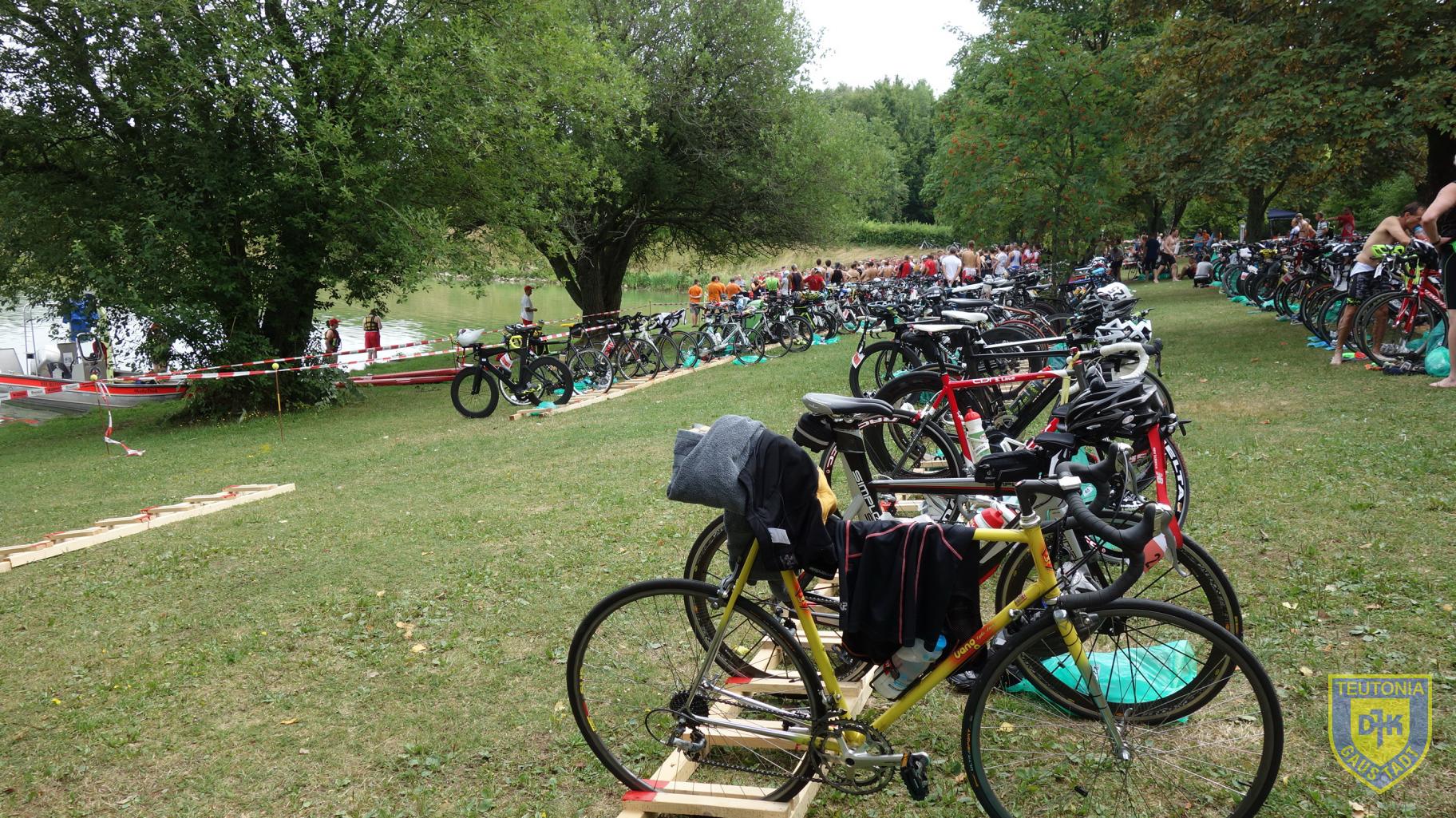 Nachdem ich bereits im vergangenen Jahr bei der Sprintdistanz in Hofheim gestartet bin und seitdem mein erster Freiwasser Wettkampf als dunkel verschwommene Nahtod-Erfahrung in meinen Erinnerungen waberte, beschloss ich mich der Sache noch einmal zu stellen und das Ganze erneut anzugehen. Die Umstände meinten es sehr gut! Aufgrund der Hitzewelle der letzten Tage betrug die Wassertemperatur des Ellertshäuser See gemütliche 24,6 Grad, im Vorjahr waren es 20,6 Grad. Dazu zog pünktlich zum Schwimmstart eine Wolkendecke vor die Mittagssonne, so dass die gefürchtete extreme Hitze erst einmal ausblieb.