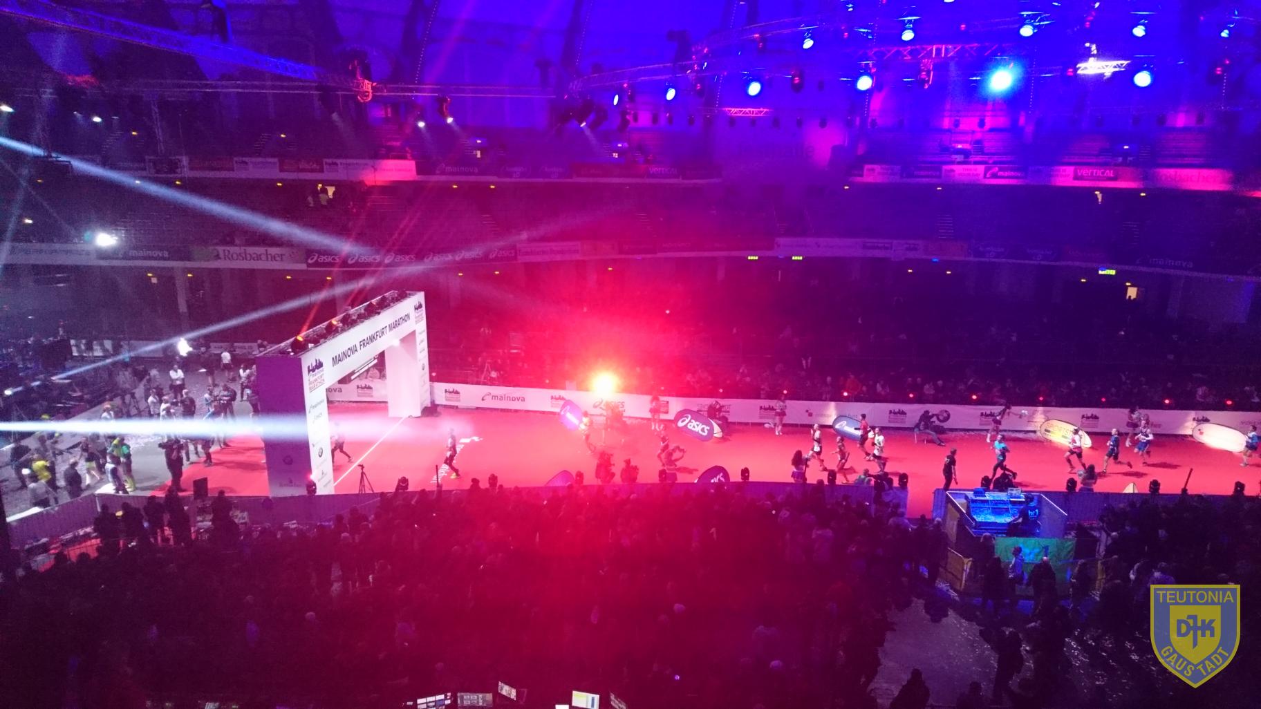 Das Wochenende startete am Samstag um 10:00 Uhr vor der Festhalle Frankfurt mit dem 5 km Brezellauf. Ohne Zeitmessung ging es in lockerem Schnitt durch Frankfurt entlang des Mains zurück zum Messegelände. Im Ziel gab es eine Frankfurter Brezel für alle zum Essen und dank des Sponsors Interair auch zum Umhängen, allerdings nicht aus Teig, sondern aus Metall. Anschließend stand die Abholung der Startunterlagen an. Hier haben wir uns dann mit William getroffen, der direkt aus Bamberg angereist war. Auf der Messe gab es noch die Möglichkeit für ein gemeinsames Foto mit sehr sympathischen Laufvorbildern und ein kurzes Pläuschchen mit Gabi und Dieter vom DJK LC Vorra Laufclub, die ebenfalls beide am Start am Sonntag waren. Am Abend sind Sandra, William und ich gemeinsam Essen gegangen und haben den Abend entspannt ausklingen lassen. Ich erwähnte weiter oben bereits die perfekten Rahmenbedingungen, bei denen ich die geschenkte Stunde der Zeitumstellung nicht unerwähnt lassen möchte. Herrlich, 9 Stunden Schlaf!