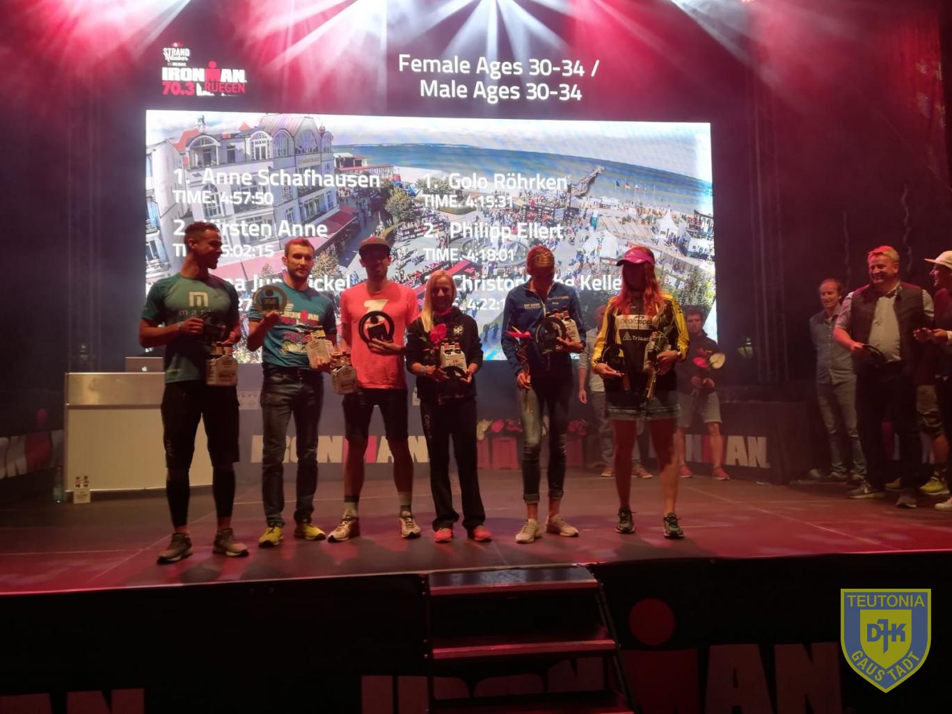 Beim Radfahren konnte ich mir auf den 90km einen guten Vorsprung mit einem Schnitt von 35,3 km/h sichern. Auch das anschließende Laufen sollte an diesem Tag gut funktionieren. Einzige Hürde war der Klünderberg mit zwischenzeitlich 11% Steigung welcher 4mal zu überlaufen war. Dabei rutschte ich auf Rang 2 meiner Altersklasse zurück. Dies erfuhr ich jedoch erst im Ziel, da die Siegerin meiner AK 20min nach mir ins Wasser gegangen ist und den Halbmarathon mit einer 4:00 Pace absolvieren konnte. Starke Leistung. Schneller war an diesem Tag nur Laura Philipps unter den Damen.