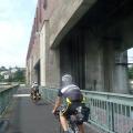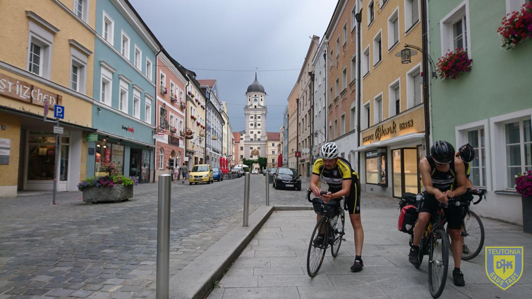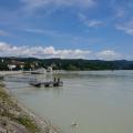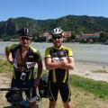 Wir starteten die Tour um 12:49 Uhr am Regensburger Hauptbahnhof. Der Weg dorthin musste aus Zeitgründen jedoch mit der Bahn überbrückt werden, so dass der eigentliche Tourstart am Bamberger Bahnhof um 09:15 Uhr zu datieren ist. Es war einer der heißesten Tage, die Temperatur kletterte schon gegen Mittag auf über 30 Grad. Der Donauradweg war dank der Beschilderung schnell gefunden. Nach dem Regensburg passiert war, eröffnete sich ein beeindruckendes Panorama: rechts floss die Donau gemütlich in Richtung Schwarzes Meer, links waren die Ausläufer des Bayerischen Waldes zu sehen. Es wurde immer heißer, Michaels Thermometer zeigte 37 Grad an. Nicht sonderlich gut für den Kreislauf. Dann das erste Ärgernis: Aufgrund von Bauarbeiten am Damm galt es, eine Umleitung zu fahren, überwiegend Schotterpisten. Ein Umstand, der bis nach Österreich immer wiederkehren sollte. Nach ca. 55 km eine kurze Pause in Straubing. Die leeren Speicher wieder auffüllen. Schon jetzt kündigte sich von Norden her ein Unwetter an. Auf dem Weg nach Deggendorf kam die Gewitterfront immer näher, verfing sich aber teilweise im Bayerischen Wald, so dass der Ausweichplan, schon in Deggendorf Station zu machen, nicht umgesetzt werden musste. Nach einer kurzen Pause ging es weiter Richtung Etappenziel Vilshofen. Die ersten Tropfen fielen mit Ankunft am Hotel. Dass wir richtig Glück hatten, sollten wir erst am nächsten Tag in den Nachrichten in Linz bemerken. Nach der wohlverdienten Dusche ging es in das angeschlossene Restaurant und der Abend klang mit einem gemütlichen Kurzbesuch an der Donau aus.