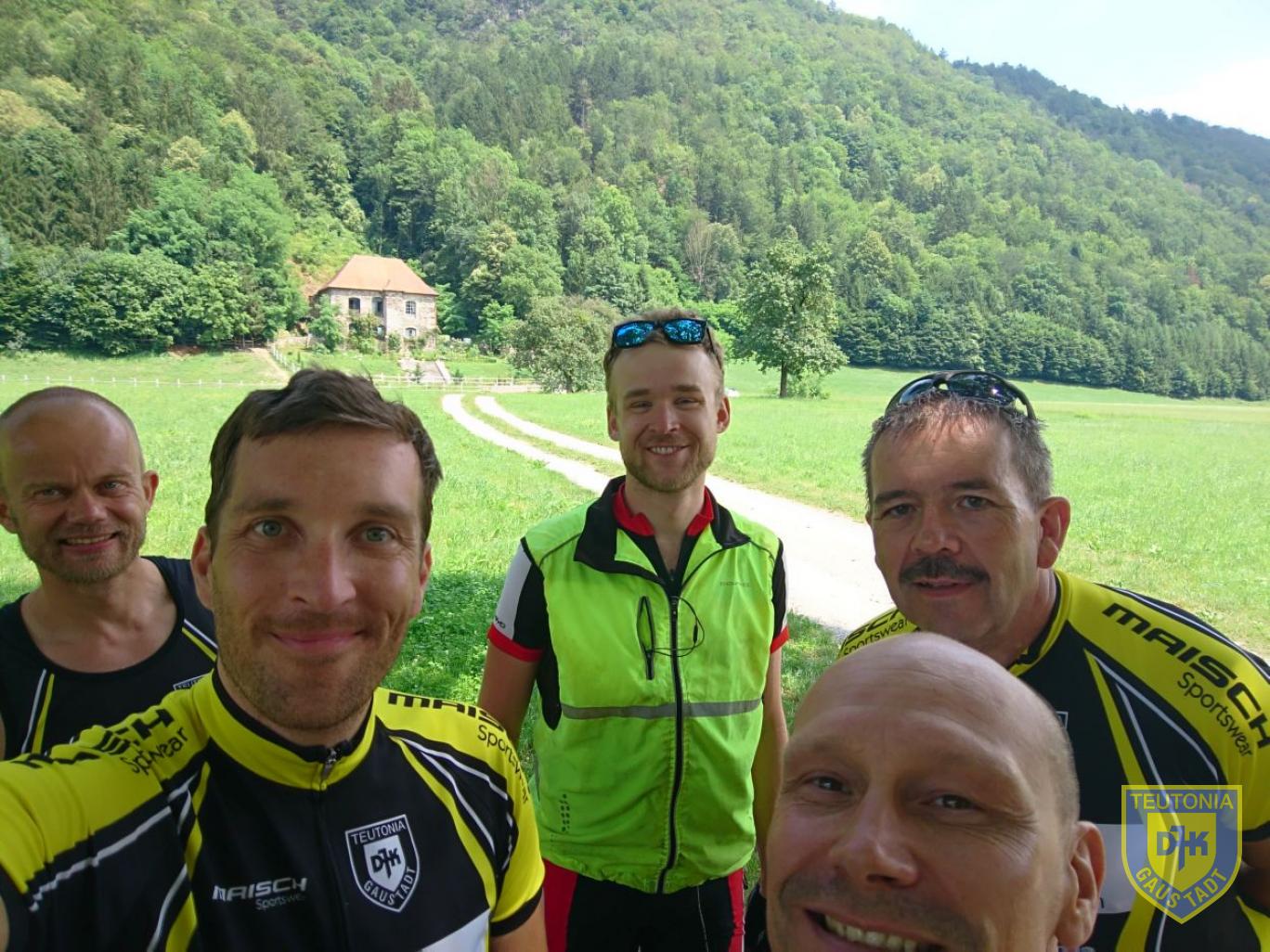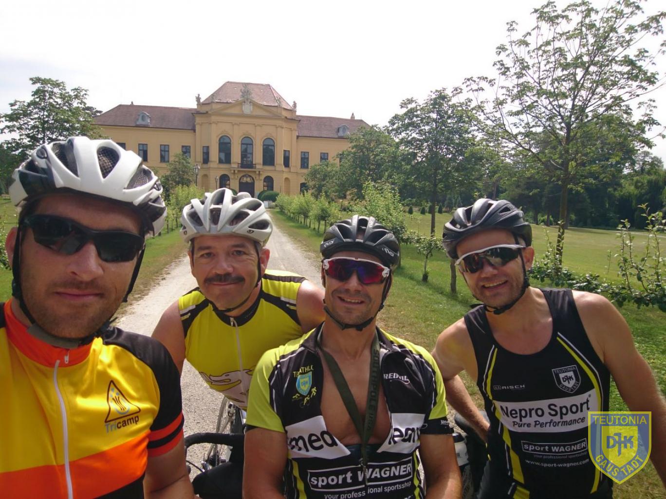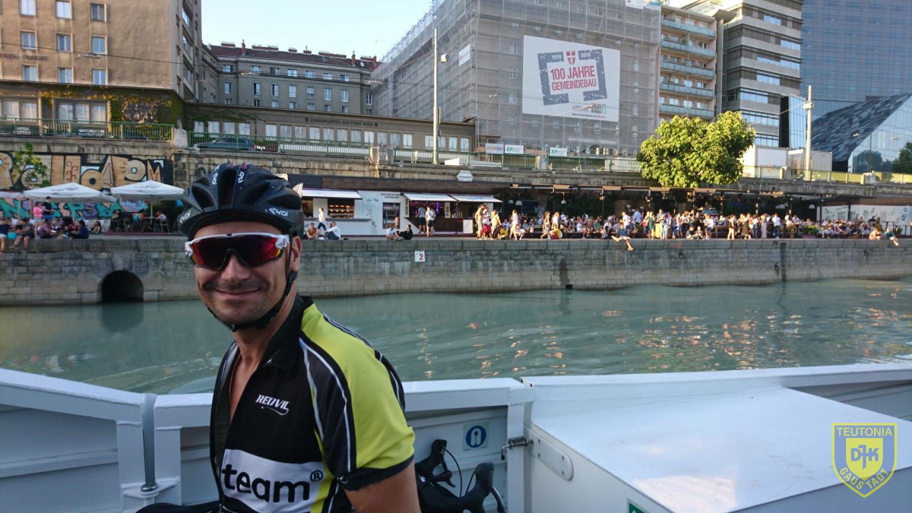 Das große Ziel naht: die letzte größere Etappe, die es mit Gepäck zu fahren galt, startete gegen halb zehn am Marillenhof in Melk. Als Vorbereitung genossen wir wieder ein hervorragendes Frühstück mit selbstgebackenen Brötchen. Die ersten Kilometer rollte der DJK-Express mit Tender wieder entlang des Donauradweges. Nach knapp einer Stunde Fahrt nährten wir uns Dürnstein. Am Nordufer gelegen thront über der Stadt die einst mächtige Burg Dürnstein, heute nur noch eine Ruine, erbaut Mitte des 12. Jahrhunderts. Ein kurzer Stopp mit obligatorischem Foto erfolgte. Jedoch anders als Richard Löwenherz wurden wir nicht zu unfreiwilligen Gästen. Herzog Leopold V. bzw. Hadmar II. hielten den Englischen König auf seiner Rückkehr vom Dritten Kreuzzug dort gefangen und lieferten diesen später an Kaiser Heinrich VI. aus. Eine Festungshaft blieb uns allerdings glücklicherweise erspart. Nach einer kurzen Hast, bei der Jens und Ole vom DJK-Tross abrissen, kehrten wir zum Mittag in die Bärndorferhütte am Fuße des Atomkraftwerkes Zwentendorf ein. Das AKW wird als die größte Investitionsruine Österreichs bezeichnet, denn es ging tatsächlich nie in Betrieb. Somit mussten wir uns auch keine Sorgen machen und konnten entspannt das Essen genießen. Die Kilometer flogen weiter an uns vorbei, bis wir nach knapp 110 Kilometer einen letzten Stopp kurz vor Wien einlegten. Wir verabschiedeten uns bereits von unserem Begleiter, der am selben Tag noch ein paar Kilometer fahren wollte. Von Norden her rollten wir dann nach Wien ein, ohne direkt zu wissen, dass wir bereits da waren. Es fehlte das Ortsschild auf dem Radweg, so dass wir bereits mitten in Wien zum Halten kamen. Die nun endgültige Verabschiedung von Ole war dann doch irgendwie merkwürdig, hatte er uns doch jetzt fast 3 Tage und 300 km begleitet. Aber Wege trennen sich und Bamberger wissen es: Man sieht sich immer zweimal. Zur Überbrückung der Schlüsselübergabe der Unterkunft genossen Christian, Michael und Ralf einen kurzen Sprung in die Donau, während Jens bei den Fahrrädern ein wenig döste. Eine Zwei-Zimmer-Wohnung im sechsten Stock mitten in der Wiener Donaustadt diente als Unterkunft, die Räder parkten auf den zwei angeschlossenen Balkonen. Getreu Reinhard Fendrichs Hit „Haben sie Wien schon bei Nacht gesehen, haben sie das schon erlebt?“ war der Plan für den Abend geschmiedet: Essen im nahegelegenen Donau Zentrum und danach mit der U-Bahn zum Stephansplatz. Ein kurzer Rundgang durch die Wiener Innenstadt, vorbei am Stephansdom, der Wiener Hofburg sowie der Österreichischen Nationalbibliothek zur Albertina endete dann mit einem Radler aus der Dose auf einer Parkbank mitten in der Wiener Innenstadt, durchaus stilvoll.