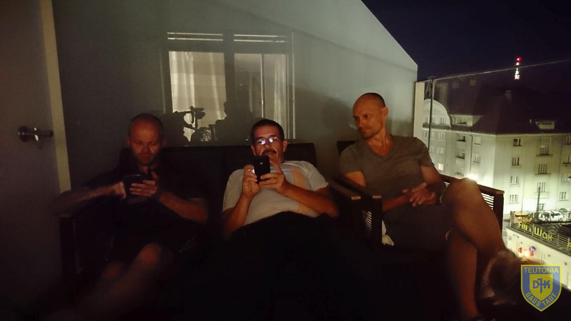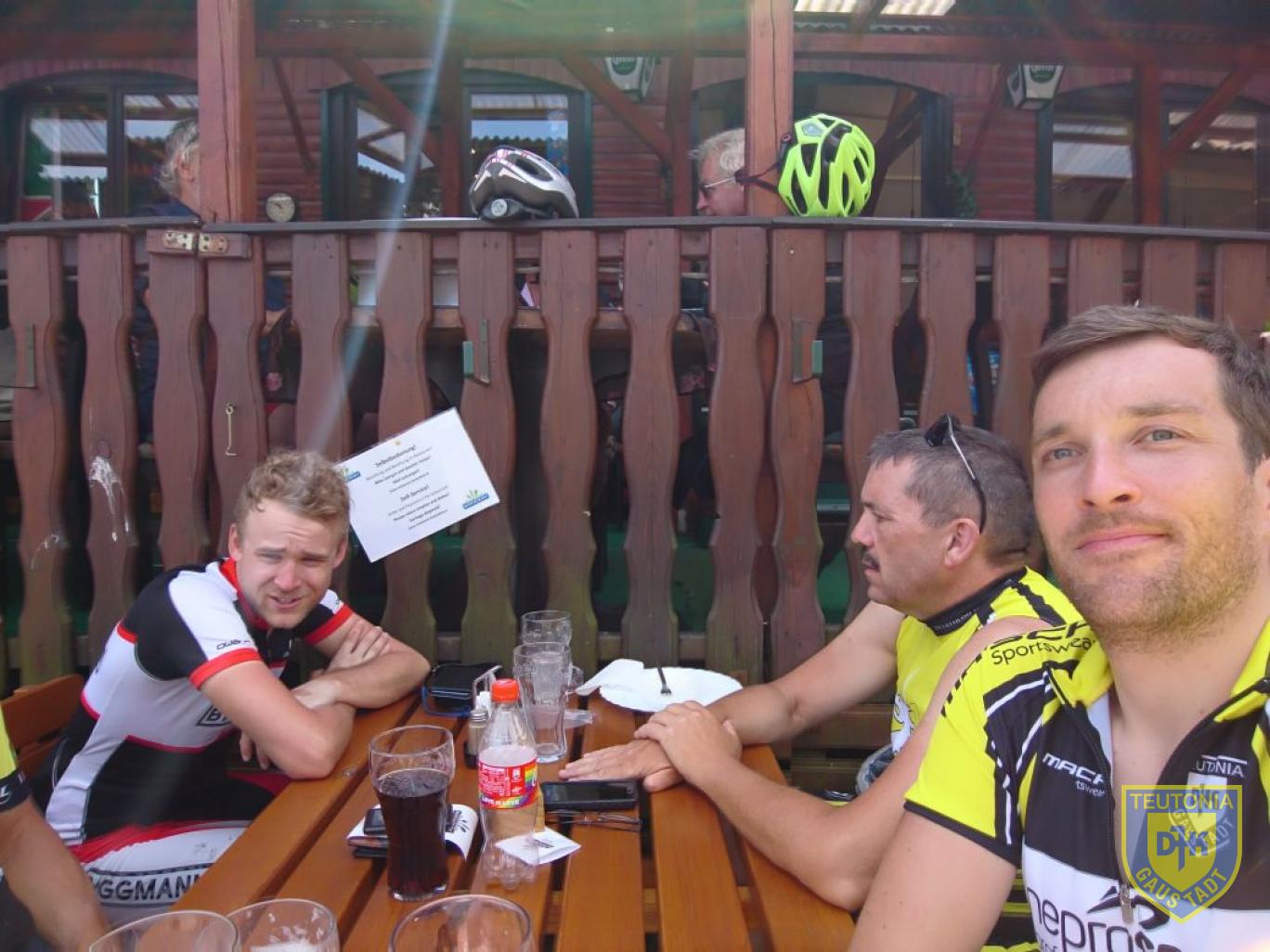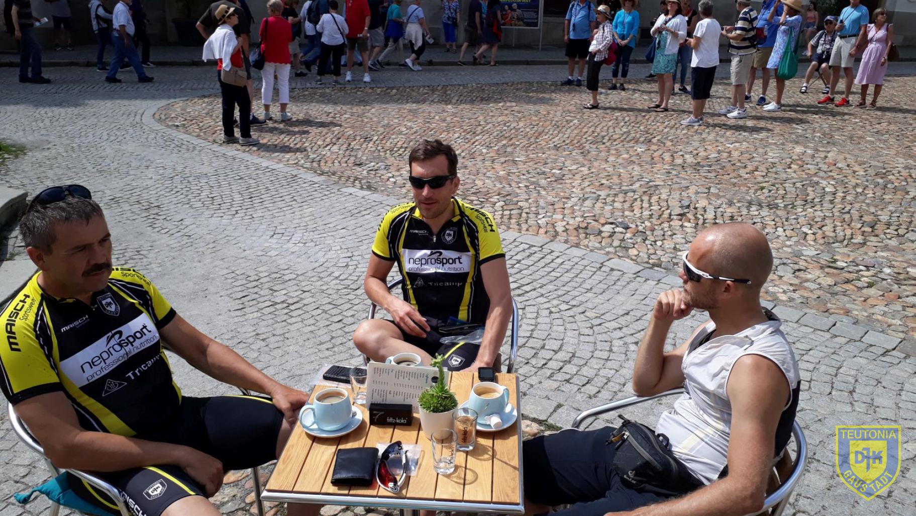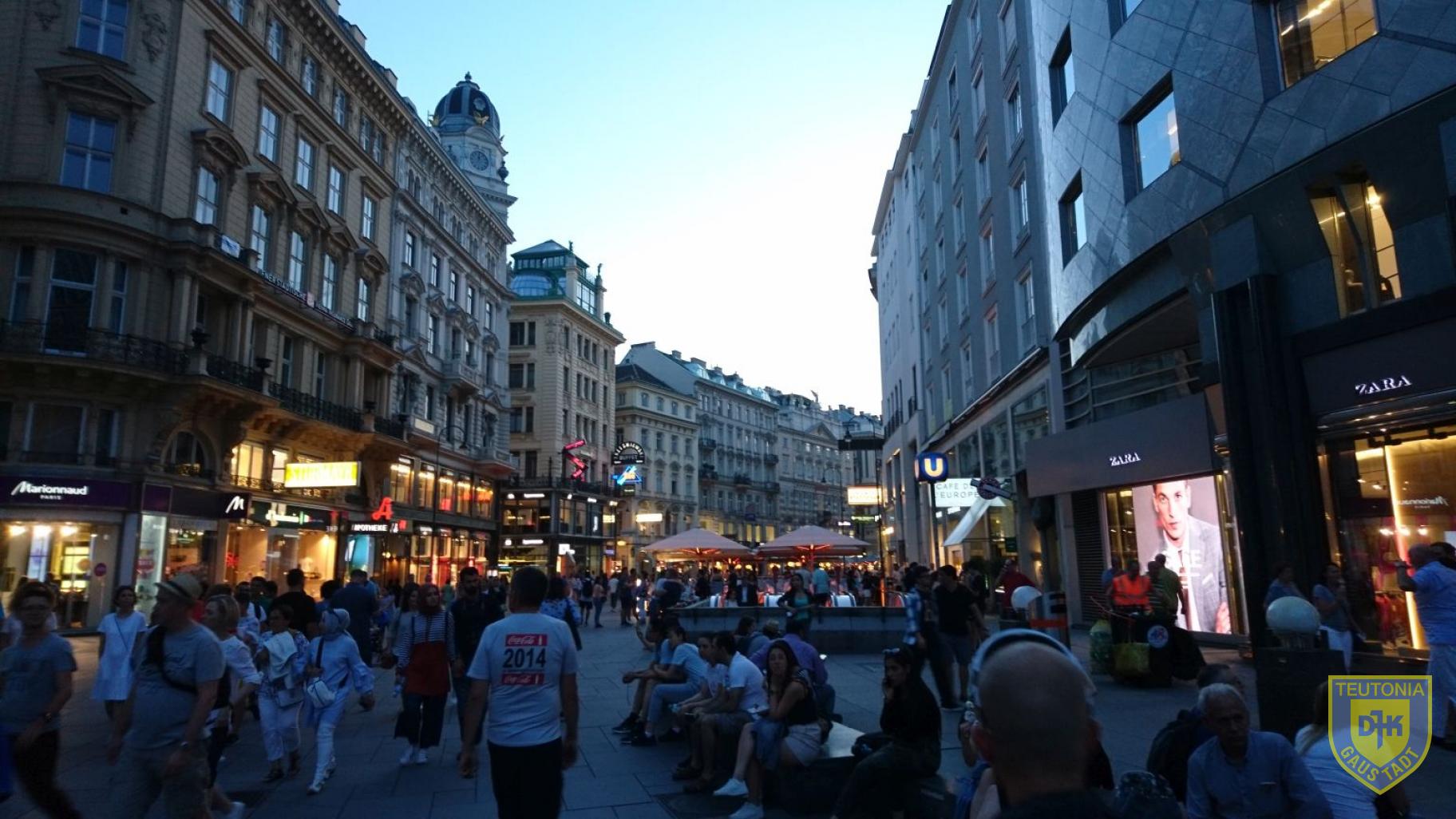 Das große Ziel naht: die letzte größere Etappe, die es mit Gepäck zu fahren galt, startete gegen halb zehn am Marillenhof in Melk. Als Vorbereitung genossen wir wieder ein hervorragendes Frühstück mit selbstgebackenen Brötchen. Die ersten Kilometer rollte der DJK-Express mit Tender wieder entlang des Donauradweges. Nach knapp einer Stunde Fahrt nährten wir uns Dürnstein. Am Nordufer gelegen thront über der Stadt die einst mächtige Burg Dürnstein, heute nur noch eine Ruine, erbaut Mitte des 12. Jahrhunderts. Ein kurzer Stopp mit obligatorischem Foto erfolgte. Jedoch anders als Richard Löwenherz wurden wir nicht zu unfreiwilligen Gästen. Herzog Leopold V. bzw. Hadmar II. hielten den Englischen König auf seiner Rückkehr vom Dritten Kreuzzug dort gefangen und lieferten diesen später an Kaiser Heinrich VI. aus. Eine Festungshaft blieb uns allerdings glücklicherweise erspart. Nach einer kurzen Hast, bei der Jens und Ole vom DJK-Tross abrissen, kehrten wir zum Mittag in die Bärndorferhütte am Fuße des Atomkraftwerkes Zwentendorf ein. Das AKW wird als die größte Investitionsruine Österreichs bezeichnet, denn es ging tatsächlich nie in Betrieb. Somit mussten wir uns auch keine Sorgen machen und konnten entspannt das Essen genießen. Die Kilometer flogen weiter an uns vorbei, bis wir nach knapp 110 Kilometer einen letzten Stopp kurz vor Wien einlegten. Wir verabschiedeten uns bereits von unserem Begleiter, der am selben Tag noch ein paar Kilometer fahren wollte. Von Norden her rollten wir dann nach Wien ein, ohne direkt zu wissen, dass wir bereits da waren. Es fehlte das Ortsschild auf dem Radweg, so dass wir bereits mitten in Wien zum Halten kamen. Die nun endgültige Verabschiedung von Ole war dann doch irgendwie merkwürdig, hatte er uns doch jetzt fast 3 Tage und 300 km begleitet. Aber Wege trennen sich und Bamberger wissen es: Man sieht sich immer zweimal. Zur Überbrückung der Schlüsselübergabe der Unterkunft genossen Christian, Michael und Ralf einen kurzen Sprung in die Donau, während Jens bei den Fahrrädern ein wenig döste. Eine Zwei-Zimmer-Wohnung im sechsten Stock mitten in der Wiener Donaustadt diente als Unterkunft, die Räder parkten auf den zwei angeschlossenen Balkonen. Getreu Reinhard Fendrichs Hit „Haben sie Wien schon bei Nacht gesehen, haben sie das schon erlebt?“ war der Plan für den Abend geschmiedet: Essen im nahegelegenen Donau Zentrum und danach mit der U-Bahn zum Stephansplatz. Ein kurzer Rundgang durch die Wiener Innenstadt, vorbei am Stephansdom, der Wiener Hofburg sowie der Österreichischen Nationalbibliothek zur Albertina endete dann mit einem Radler aus der Dose auf einer Parkbank mitten in der Wiener Innenstadt, durchaus stilvoll.
