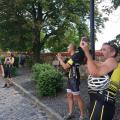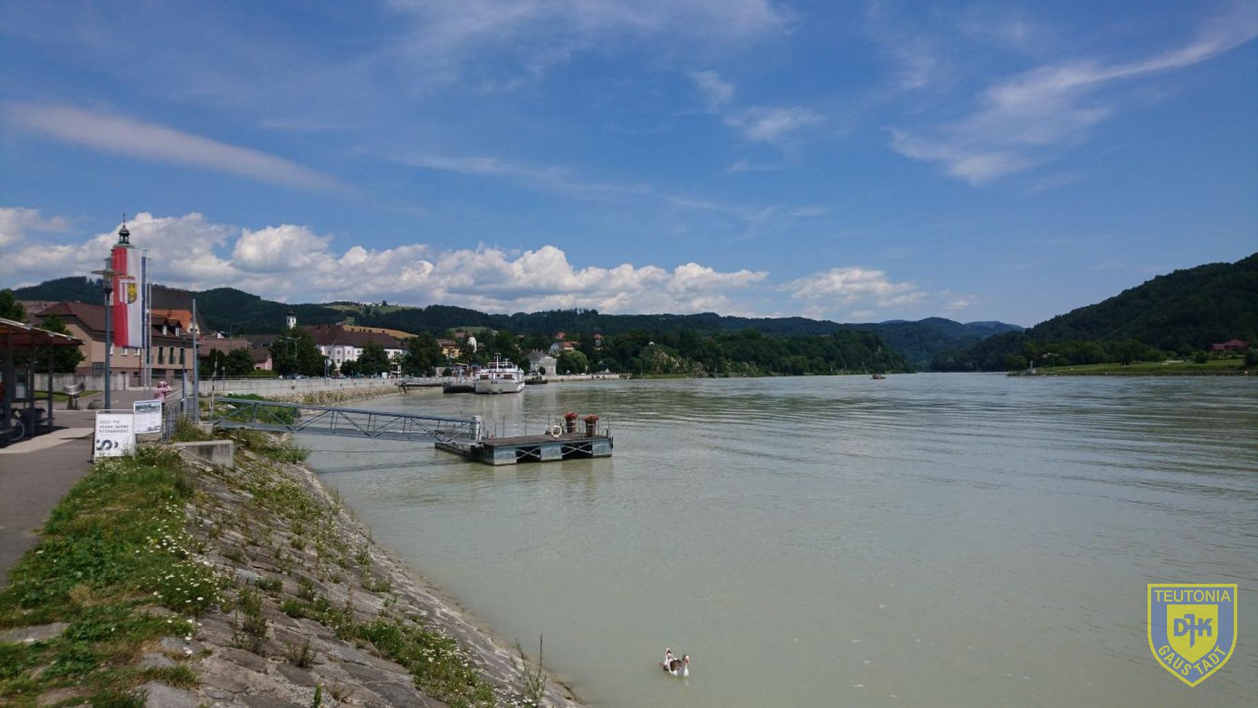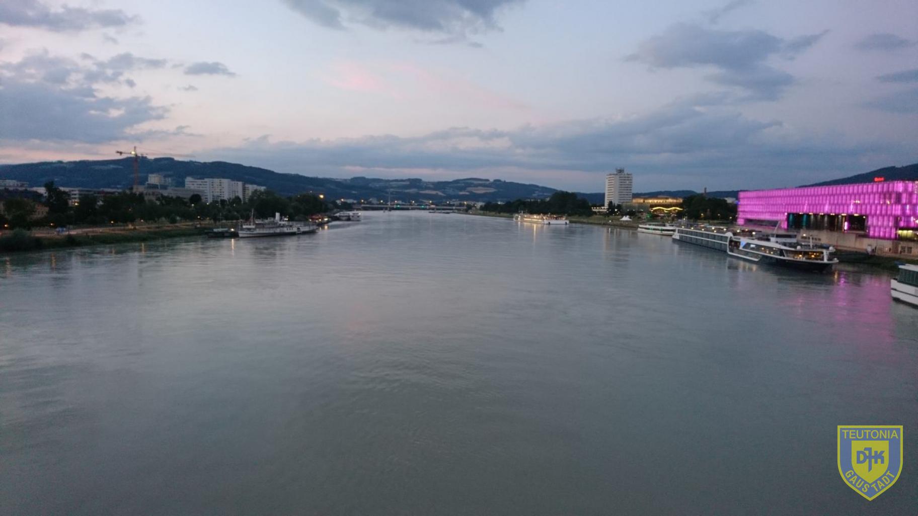 Es hatte die Nacht durchgeregnet und das Geräusch von leichtem Nieselregen am Morgen drang durch das geöffnete Fenster in den dritten Stock unserer Unterkunft. Gegen halb acht ging es runter zum gemeinsamen Frühstück. Beim Frühstücksbuffet blieb kein Wunsch offen und so ging es mit guter Stimmung weiter zur zweiten Etappe. Das knapp 125 km entfernte Linz war das nächste Ziel. Gegen 09:00 Uhr rollte der DJK-Zug an und auch der Regen hatten mittlerweile aufgehört. Bereits nach 25 km die erste kurze Pause mit obligatorischem Fototermin am Zusammenfluss der Inn, Ilz und Donau mit anschließendem Kaffee-Stopp in der Innenstadt. Wir sind mittlerweile in Passau und nach kurzem Aufenthalt ging es weiter. Die Grenzüberschreitung geschah vollkommen unwissentlich, nur an den Ortsschildern war zu erkennen, dass wir uns bereits in Österreich befinden mussten. Der Radweg hier glich einer Autobahn und lud gerade zu ein schnell zufahren. Noch vor dem Mittag machten wir dann unterwegs eine Bekanntschaft, die uns bis zum Ende der Tour erhalten bleiben sollte. Ein Rennradfahrer mit Anhänger fuhr uns voraus, offensichtlich auch recht flott unterwegs, so dass wir nicht ganz so einfach aufschließen konnten, wie mancher gedacht hatte. Mit seinem kleinen Rückspiegel hatte er uns (wie er uns später gestand und aufgrund dessen wesentlich schneller fuhr als sonst) bereits gesehen. Beim Überholen kurzer musternder Blick und weiter, nur Ralf kam kurz mit ihm ins Gespräch. Ebenfalls unterwegs nach Linz und so war der Mitfahrer gefunden. Bei der ersten Pause kamen wir dann etwas mehr ins Gespräch. Ole, 27 Jahre und Psychologie-Student aus Norwegen war doch tatsächlich mit dem Rad auf dem EuroVelo 6 unterwegs, vom Atlantik ans Schwarze Meer. Wir teilten unser Essen mit Ole und fuhren von jetzt an gemeinsam. Weiter ging es nördlich der Donau bis zur Schlögener Schlinge. Hier mussten wir das einzige mal eine Fähre nehmen, da der Radweg im Norden einfach zu Ende ging, so jedenfalls die Aussage des Fährmanns. Eine sehr schöne Unterbrechung. Nur wenige Minuten dauerte das Übersetzen und es ging gleich mit vollem Elan weiter. Gegen 16:00 Uhr erreichten wir gemeinsam Linz und unsere Wege trennten sich zunächst. Unsere Unterkunft befand sich in unmittelbarer Nähe zum Donauradweg, Ole übernachtete in der südlichen Linzer Innenstadt. Wir hatten das gleiche Etappenziel am nächsten Tag und beschlossen gemeinsam weiter zu fahren. Im Hotel angekommen die ersehnte Dusche. Auf dem Abendprogramm stand ein Besuch am naheliegenden Badesee mit anschließender Verköstigung dort. Ein obligatorischer Abstecher in die Linzer Innenstadt beendete den zweiten Tag der Tour. Das klimatisierte Hotel bescherte eine angenehme Nacht.