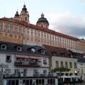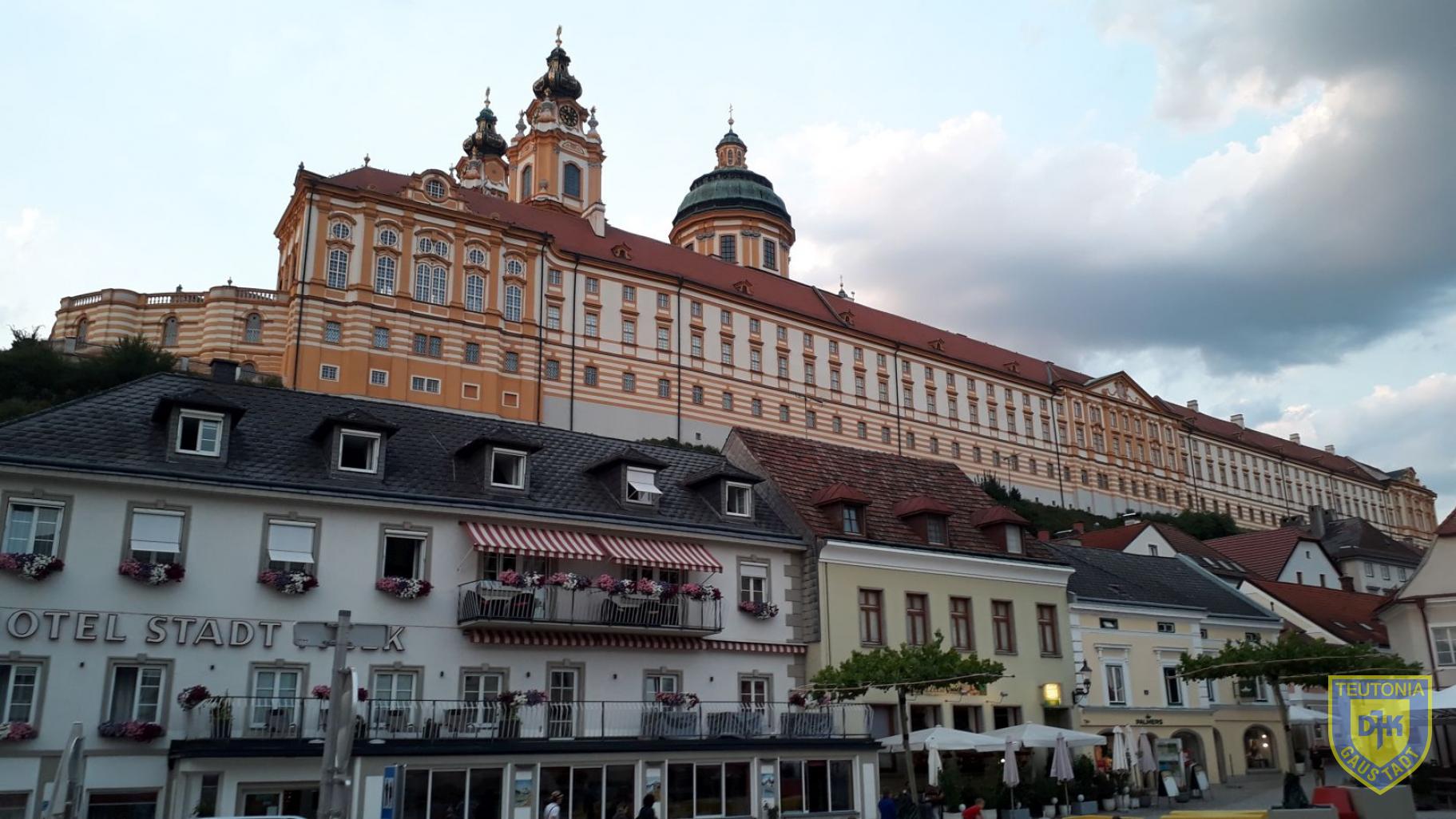 Nach einer erholsamen Nacht genossen wir in aller Gemütlichkeit das nicht ganz so umfangreiche aber trotzdem gute Frühstück und machten uns für die dritte Etappe bereit. Wie verabredet trafen wir Ole an unserem Hotel gegen halb zehn und rollten los. Heute ging es nach Melk. Auch heute wieder der erste Stopp nach nur 20 km. Wir verließen den Donauradweg in Richtung Norden. Eine kleine Anhöhe stelle sich uns in den Weg, die zwar kurz war, uns aber mit rund 14 % Steigung einige physische Kräfte abverlangte. Oben angekommen türmten sich die Mauern eines Reliktes aus dunklen Zeiten auf: Die KZ-Gedenkstätte Mauthausen. Der Besuch in der recht gut erhaltenen Anlage nagte auch ein wenig an den psychischen Kräften. Unvorstellbar aus unserer heutigen Sicht, was Menschen hier anderen Menschen vor mehr als 70 Jahren angetan haben. Ein Moment des Innehaltens, der uns weit weg katapultierte. Ein Schwarm Schwalben kreist immer wieder über die Mauern und die Türme hinweg. Einmal ein Vogel sein, wie viele Mensch an dieser Stelle diesen Gedanken wohl schon hatten? Irgendwann sind wir dann weiter, weg von diesem Ort, wieder runter an die blaue Donau. Der bisher eher leere Radweg wurde von jetzt an stetig voller, die Symphonie von vier Fahrradglocken gepaart mit dem Ausruf „rechts fahren!“ wurde zum Dauerbegleiter im Ohr der vier Teutonen. Kurze Mittagsrast in Grein nach ca. 60 km. Irgendwann tauchte dann von Weitem die Silhouette des Stifts Melk auf. Als Handlungsort in Umberto Eccos Roman „Im Namen der Rose“ weltberühmt und durchaus eindrucksvoll bereits von weitem. Auf dem Marktplatz in Melk angekommen trennten sich erneut die Wege zwischen uns und unseres Begleiters Ole. Wir verabredeten uns wieder, die morgige Etappe nach Wien gemeinsam zu fahren. Die Unterkunft lag nicht weit weg vom Donauradweg oberhalb von Melk. Nach einer kurzen und erfrischenden Dusche gingen wir runter in die Innenstadt. Die Hitze des späten Nachmittags begleitet uns auf dem Weg zum Stift Melk, ein beeindruckender Barock-Bau, der zum UNESCO-Welterbe gehört. Ein kurzer Streifzug noch durch den Stift-Garten, bevor die knurrenden Mägen uns zum Essen am Marktplatz überredeten. Es folgte das Übliche Prozedere der Verwirrung: Michael bestellte doppelt, Christian und Jens bestellten abwechselnd das Getränk, das der andere vorher hatte und so war die Bedienung wieder leicht sichtbar irritiert. Zum Ende gab es noch ein Eis auf dem Marktplatz mit bestem Blick auf das Stift und noch einen Absacker.