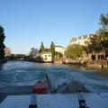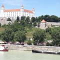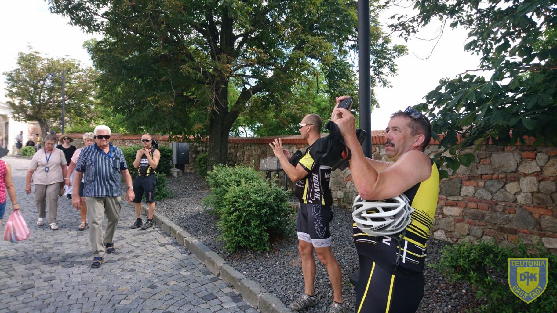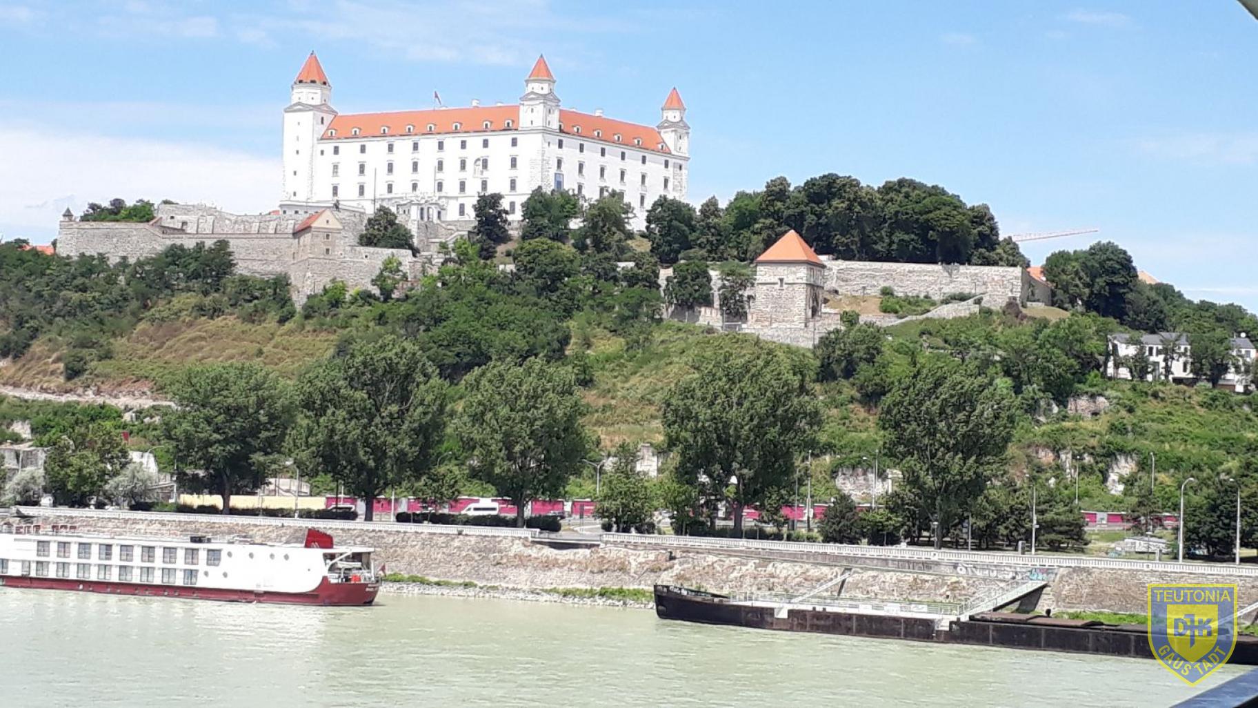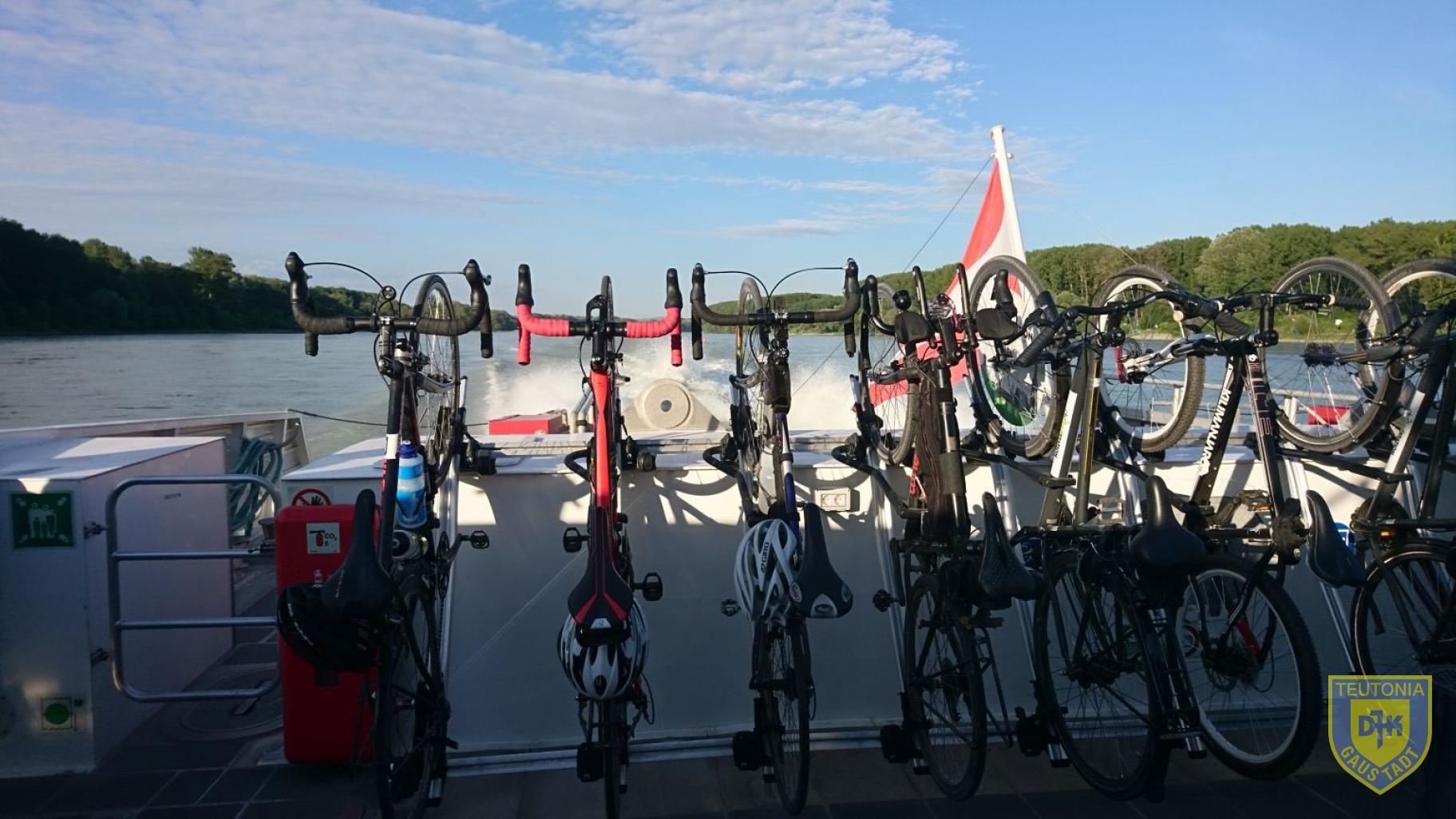 Geweckt von der Geräuschkulisse einer erwachenden Großstadt sollte es am fünften Tag zur letzten Etappe gehen. Heute einmal kein obligatorisches Verstauen der persönlichen Sieben Sachen in die Radtaschen, denn wir kehren heute Nacht zurück. Gegen 09:00 Uhr ging es los, mitten durch die Wiener Donaustadt auf der Wagramer Straße. Ein kurzes Frühstück ausnahmsweise unterwegs beim örtlichen Bäcker. Die letzte Etappe sollte deutlich kürzer werden als die bisherigen und wir ließen es locker angehen. Immer entlang der Donau Richtung Süd-Osten verpassten wir die Abzweigung, die uns eigentlich um das Zentrallager Lobau im Süden Wiens führen sollte. Ein ortskundiger Rennradler half uns aber und so waren wir schnell wieder auf Kurs. Zu viert nebeneinander rollten wir Richtung Slowakei. In Hainburg an der Donau führte der Weg direkt entlang der alten Stadtmauer, die mit 2,5 Kilometern Länge, seinen drei erhaltenen Toren und 15 Türmen eine der ältesten und am besten erhaltenen Stadtbefestigungen Europas darstellt. Eine kurze Pause in Hainburg trennte uns noch von der Einfahrt nach Bratislava. Und dann war es soweit: Über die Brücke des Slowakischen Nationalaufstandes überquerten wir die Donau und fuhren direkt auf die hoch über der Stadt liegenden Burg zu. Nach einem ausgiebigen Mittagessen in der Innenstadt besuchten wir zunächst St. Elisabeth (Blaue Kirche), erklommen den Burgberg mit den Rädern und betraten die Altstadt von Bratislava durch das Michaelertor, dem einzig erhalten gebliebenem Tor der mittelalterlichen Stadtbefestigung von Bratislava. Zurück ging es am Abend mit dem Twin City Liner, ein Katamaran, der die Strecke Bratislava – Wien in nur 70 Minuten zurücklegt. Auf dem Weg zum Anleger dann noch eine kleine Überraschung: Ole saß mit seinem Bruder und seinem Vater gerade beim Essen, so dass wir uns noch kurz unterhielten. An Bord der Fähre dann: Zeit für soziologische Studien. Was es so für Menschen gibt, ist doch immer wieder faszinierend. Die Ankunft in Wien planmäßig, auf dem Radschnellweg durch die Wiener Innenstadt zurück in unser Domizil. Den Abend ließen wir im Donau Zentrum ausklingen, weiter schafften wir es heute nicht.